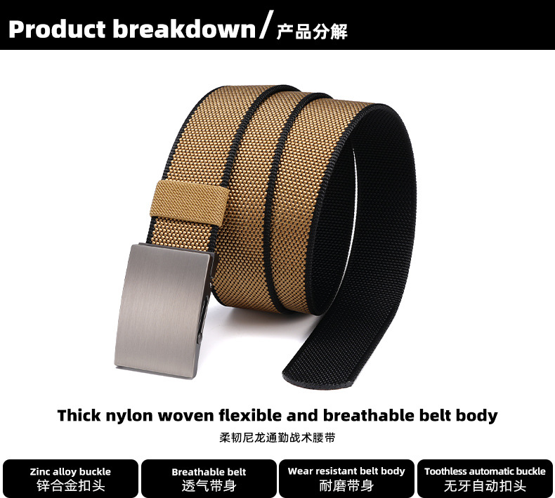 국경 간 남성 벨트 자동 버클 나일론 야외 통근 캐주얼 캔버스 바지 합금 무극 조정 벨트 남성용