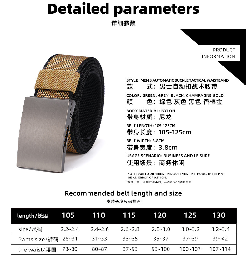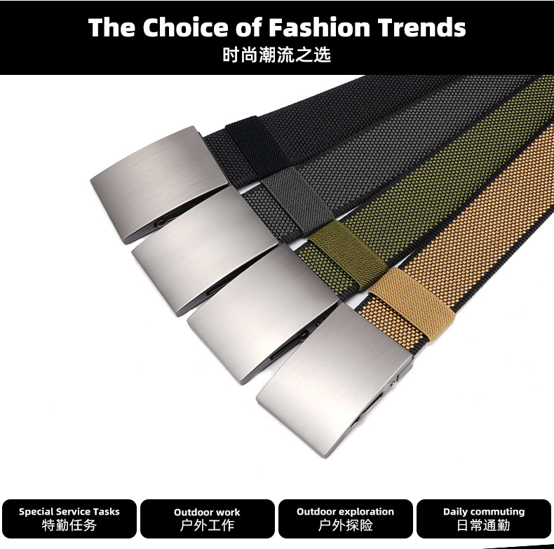 국경 간 남성 벨트 자동 버클 나일론 야외 통근 캐주얼 캔버스 바지 합금 무극 조정 벨트 남성용스토어 가기