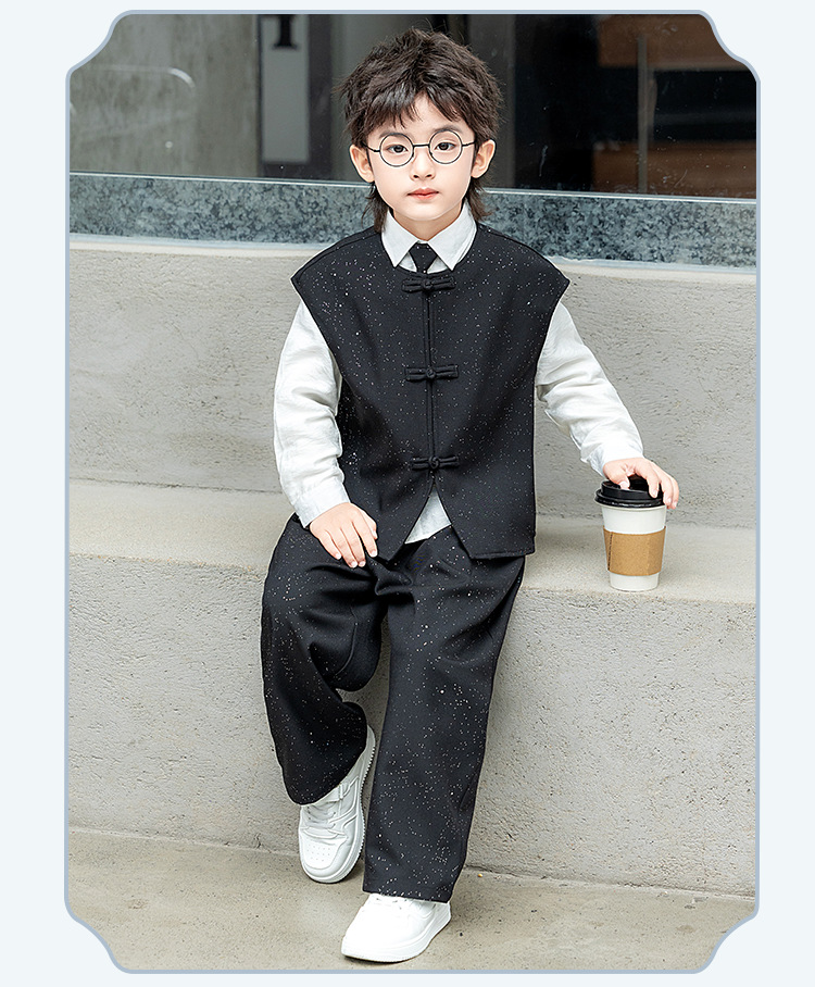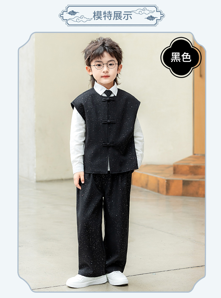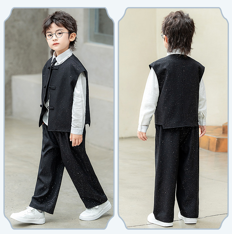 소년의 새로운 중국 조끼 세트 국가 스타일 레트로 탕 세트 어린이 활동 호스트 캣워크 공연 원피스 제조업체스토어 가기