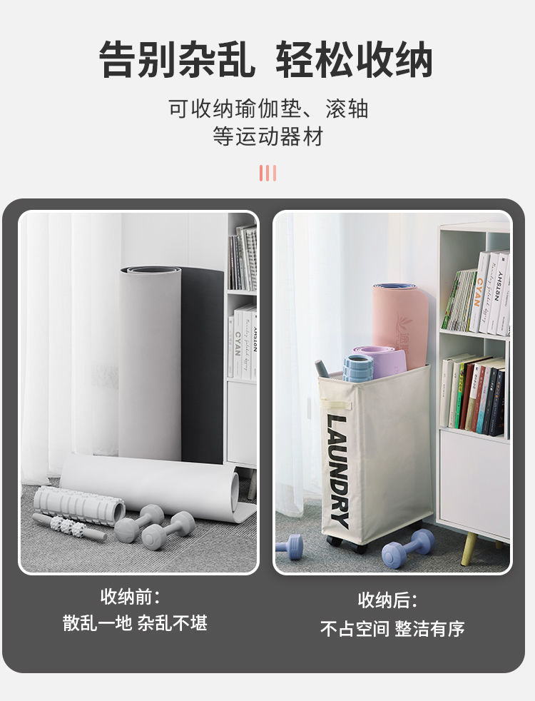 요가 매트 보관 바구니 옥스포드 천 접이식 저장 상자 가정용 보관 더러운 옷 바구니 바퀴에 침실에서 사용 가능스토어 가기