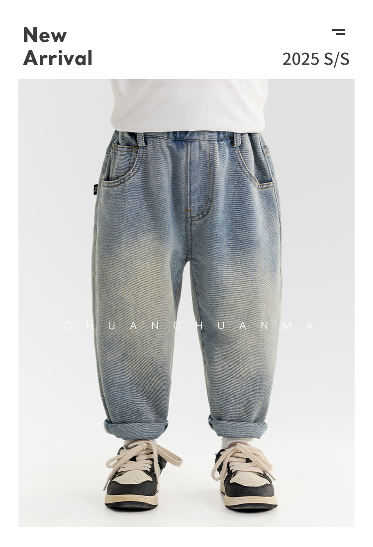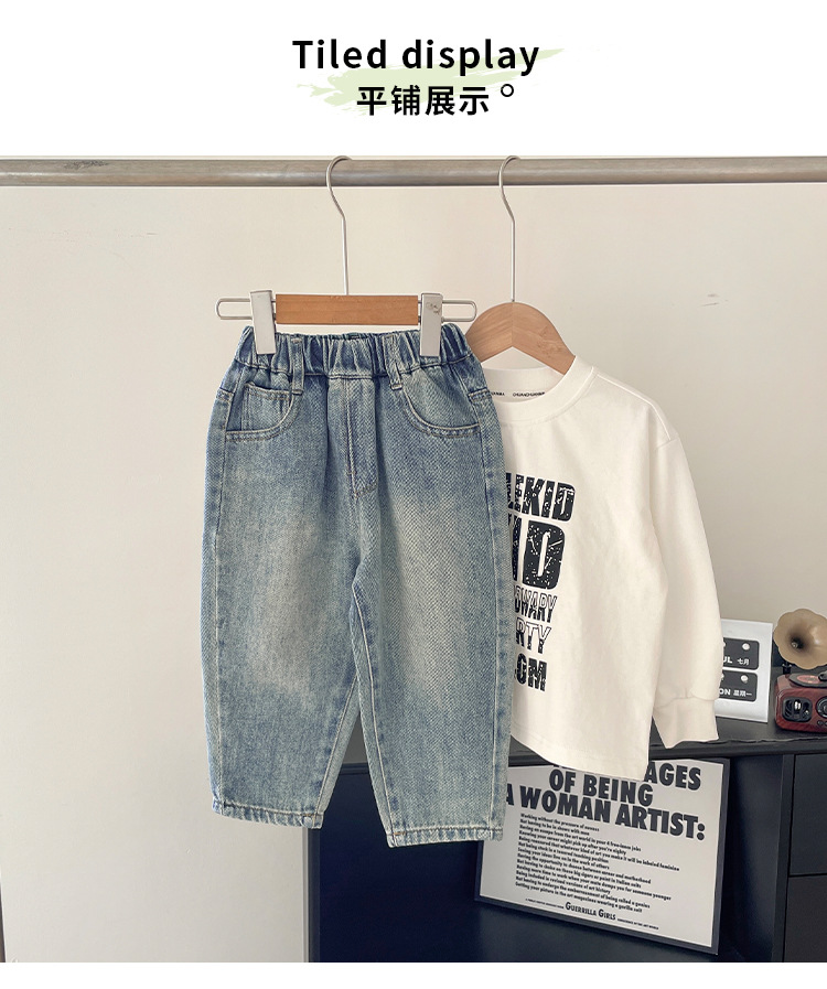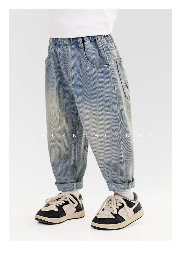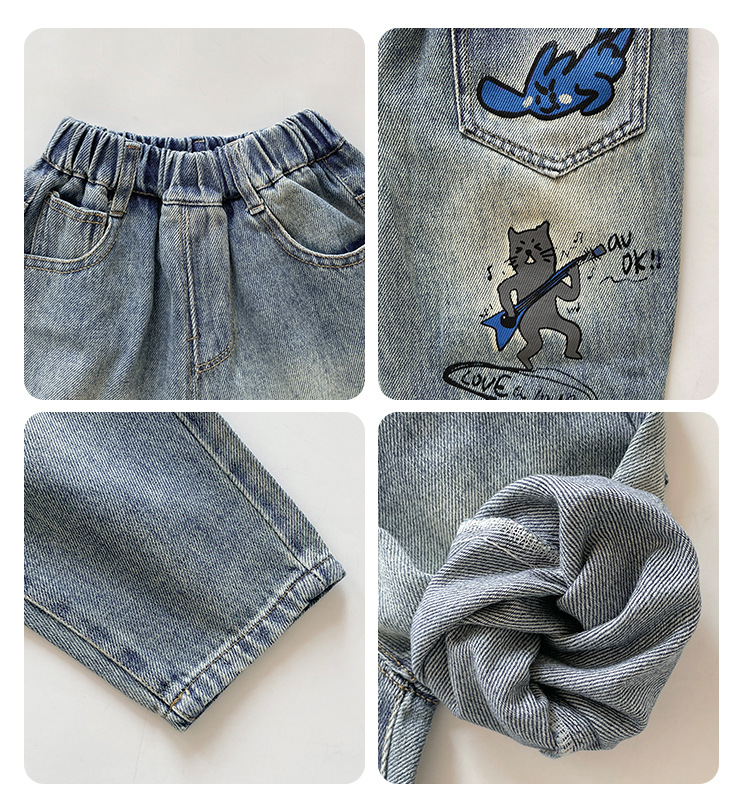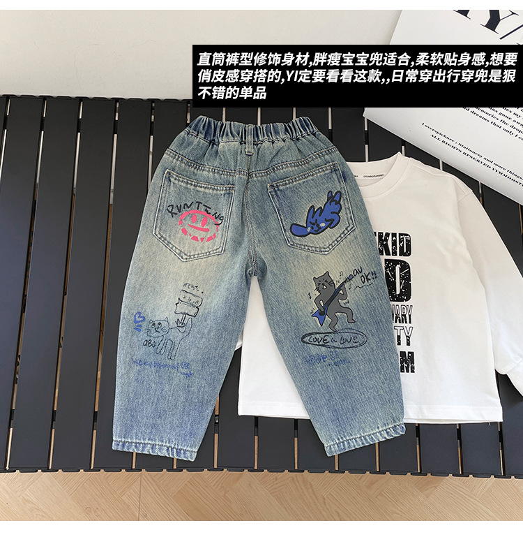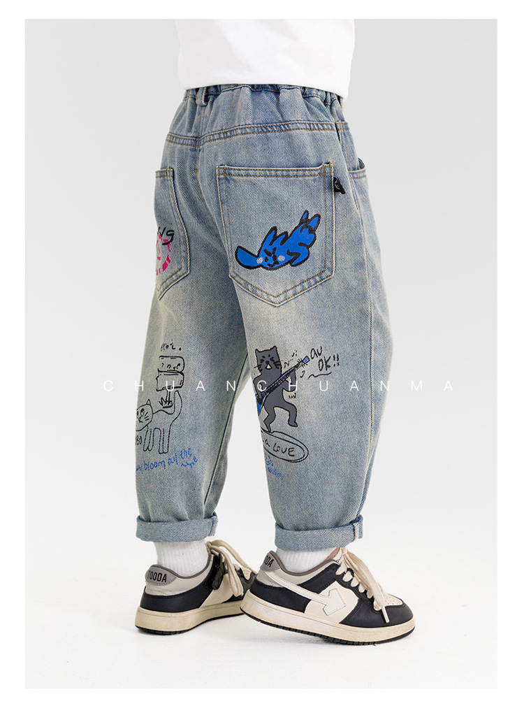 윈드 밸리 2025 봄 새 어린이 바지 한국식 포켓 낙서 청바지 소년 소녀를위한 올매치 트렌디 바지스토어 가기