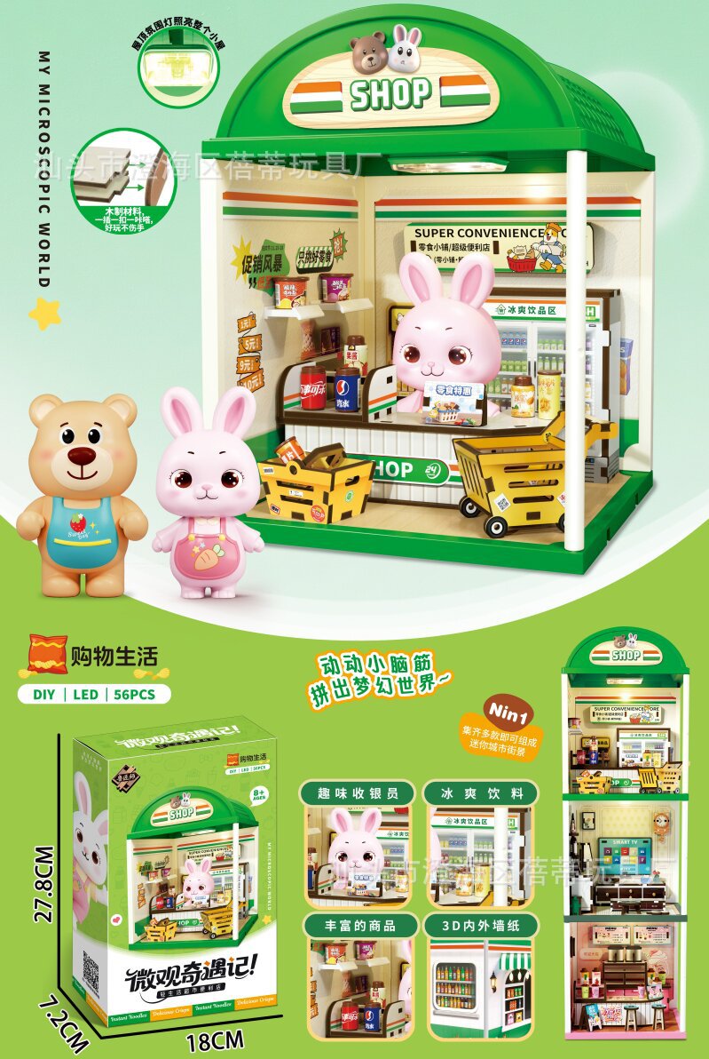 어린이 장난감 미니 장면 크리 에이 티브 수제 DIY 장식품 미니어처 세계 3 차원 조립 장난감 도매스토어 가기