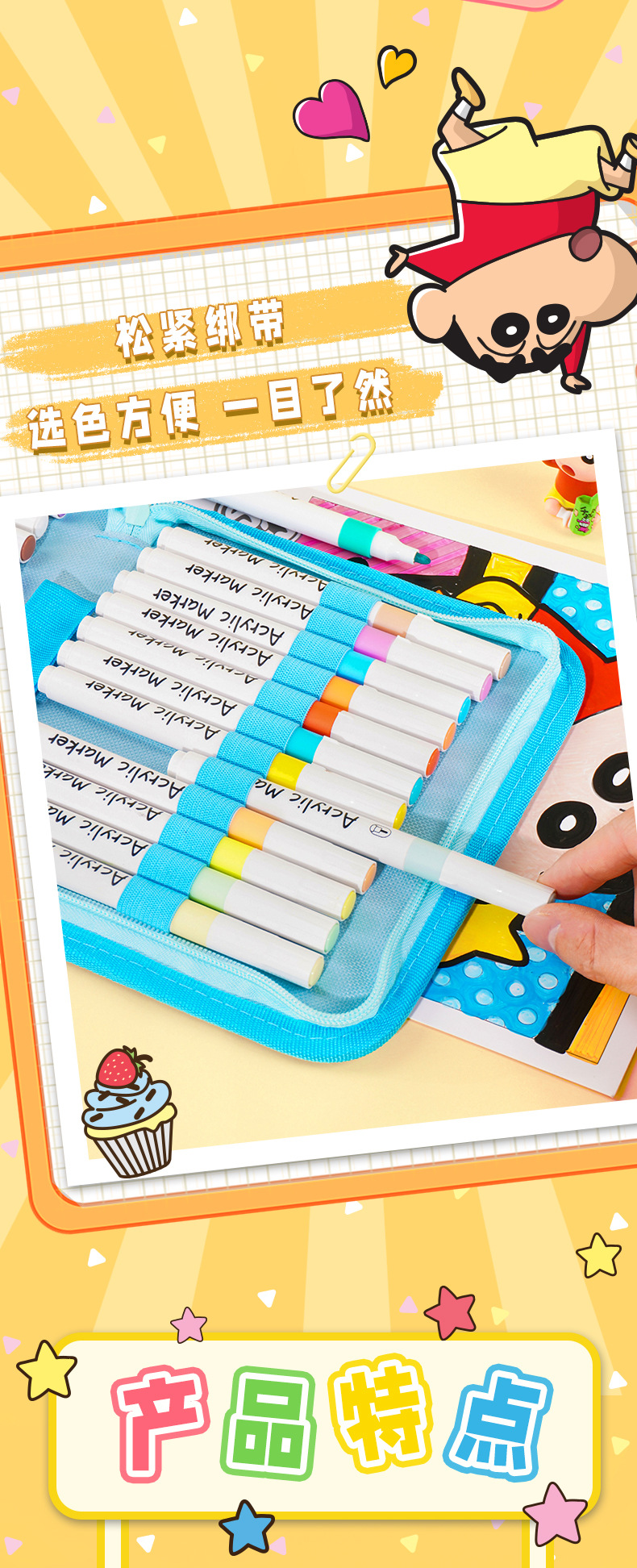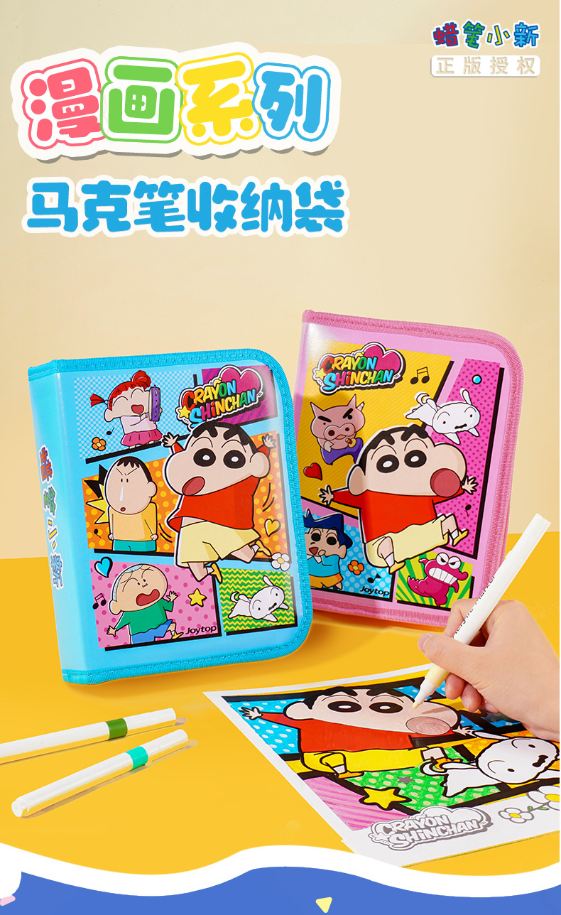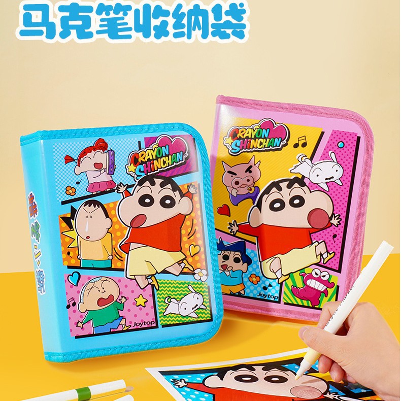 크레용 신짱 마커 펜 가방 초등학생 그림 도구 어린이 만화 유치원 펜 플러그인 보관 가방스토어 가기