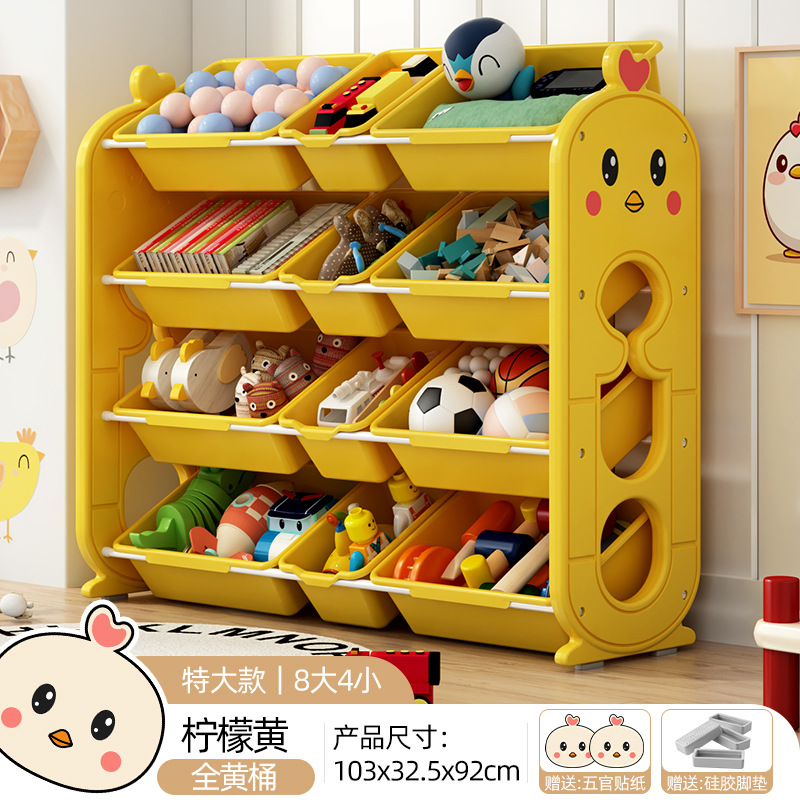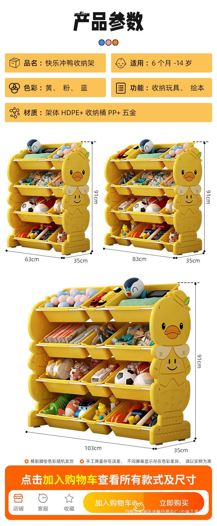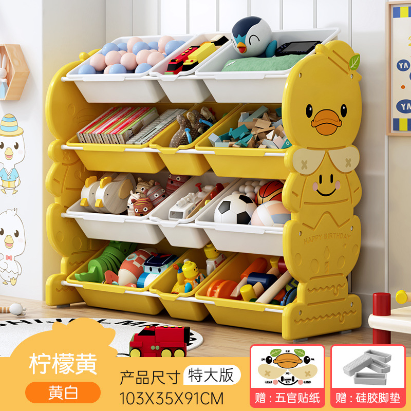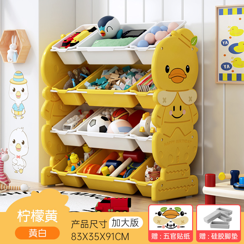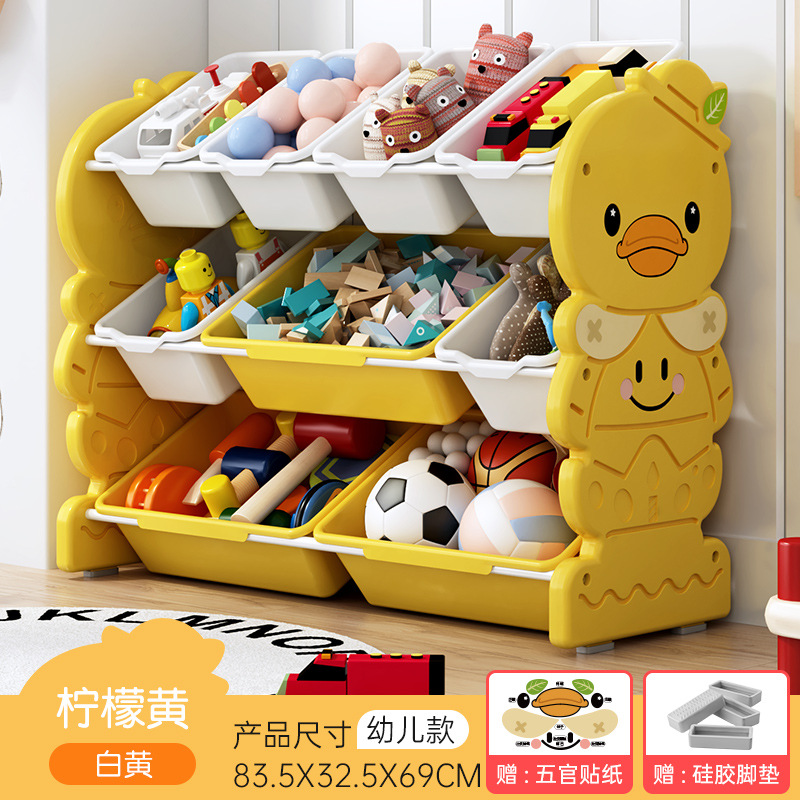 작은 노란색 오리 어린이 장난감 보관 랙 아기 저장 선반 책장 어린이 방 다층 주최자 상자 사물함스토어 가기