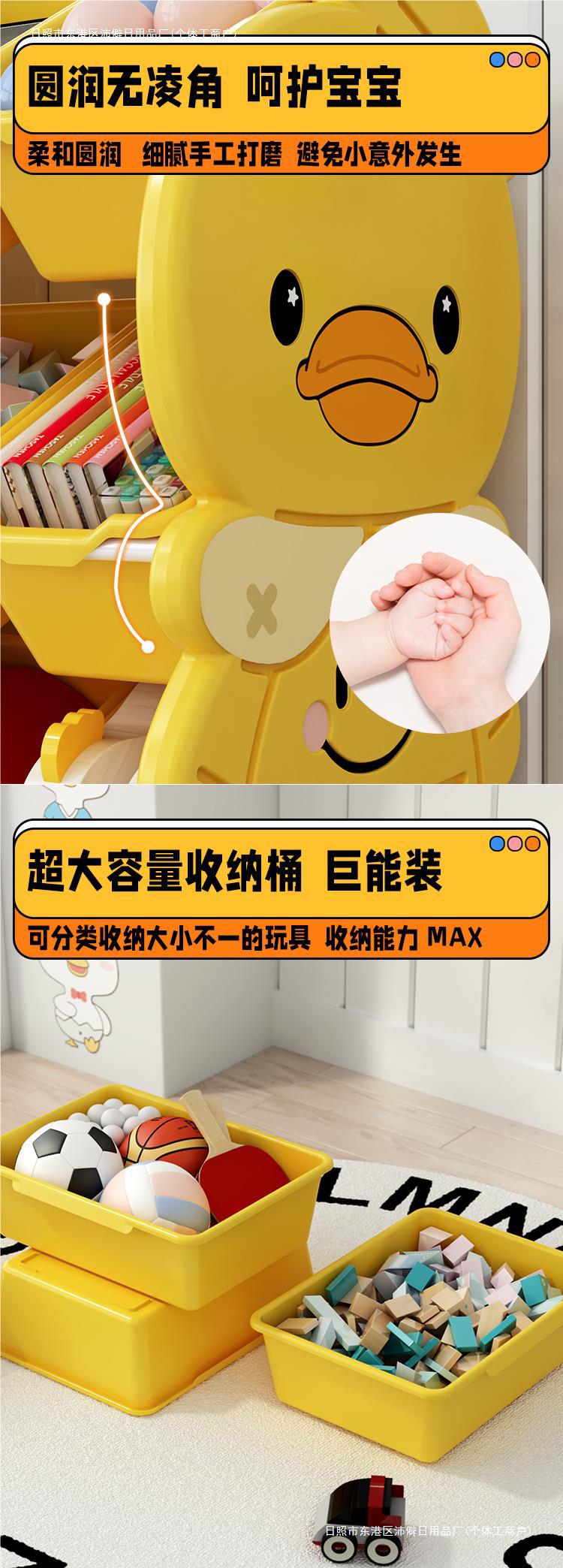 작은 노란색 오리 어린이 장난감 보관 랙 아기 저장 선반 책장 어린이 방 다층 주최자 상자 사물함