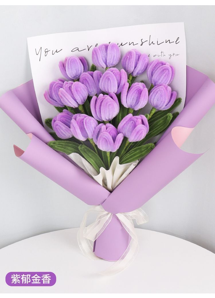 여자 튤립 소재 가방 수제 꽃다발 스틱 발렌타인 데이 교사 여자 친구를위한 DIY 선물
