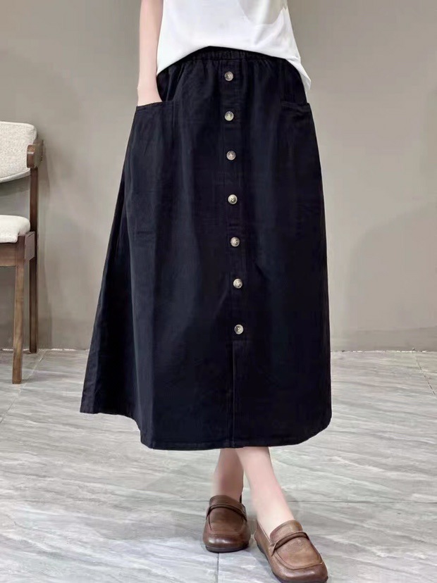 단일 행 장식 버클 2025 봄과 가을 스커트 긴 스커트 예술적 A-라인 스커트 우아한 올 매치 캐주얼 스커트