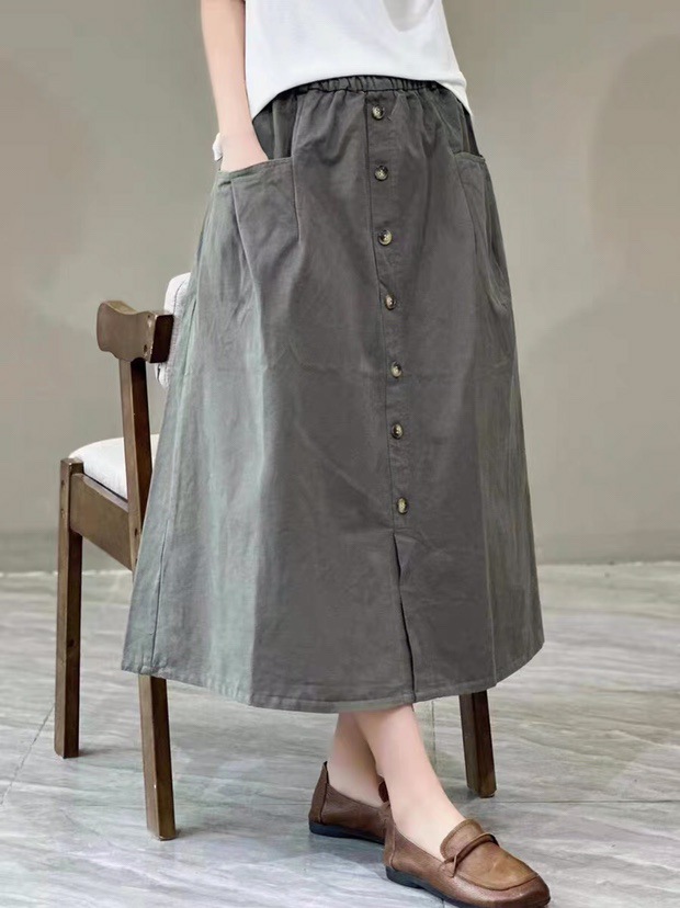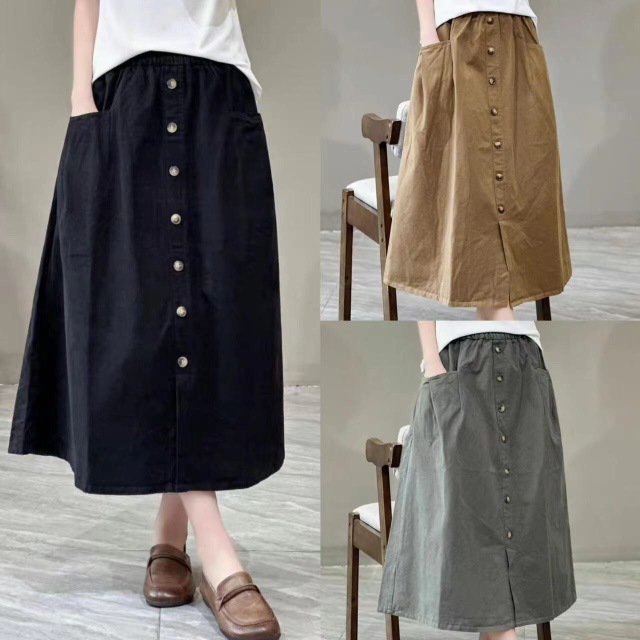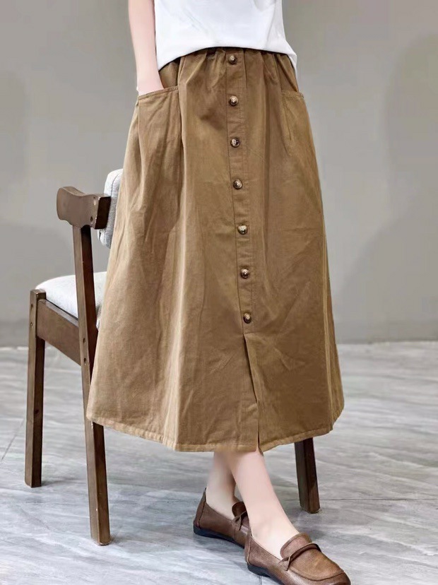 단일 행 장식 버클 2025 봄과 가을 스커트 긴 스커트 예술적 A-라인 스커트 우아한 올 매치 캐주얼 스커트스토어 가기