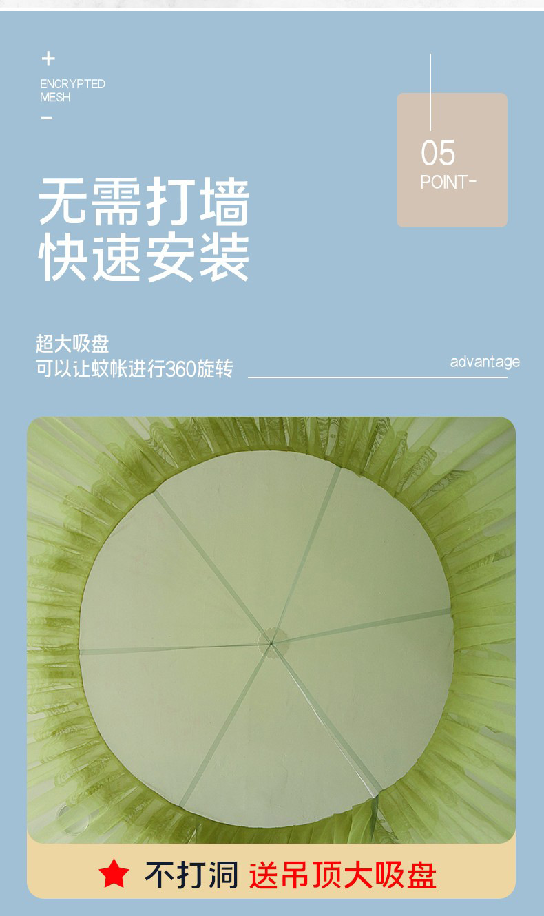 C 설치 무료 천장 돔 공주 바람 증가 암호화 모기장 가정용 침실 1.8 미터 침대 2024 흡입스토어 가기
