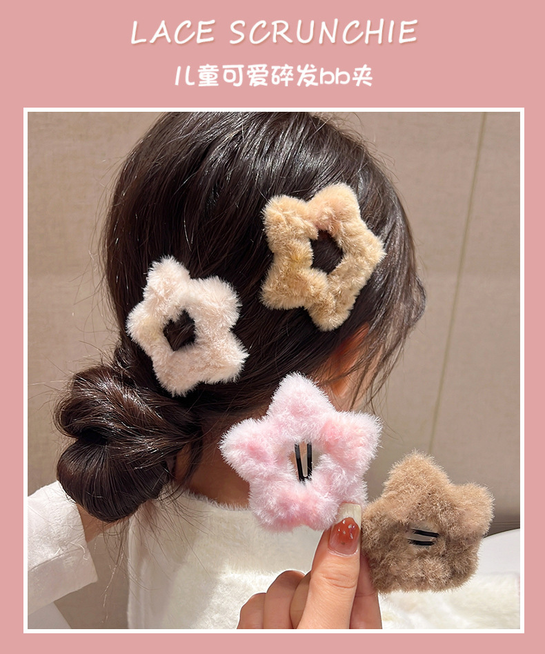 한국식 푹신한 라이스 카페 심플 스타 클립 인 소녀 봉제 다섯개 별 사이드 클립 귀여운 헤어 액세서리 헤어핀
