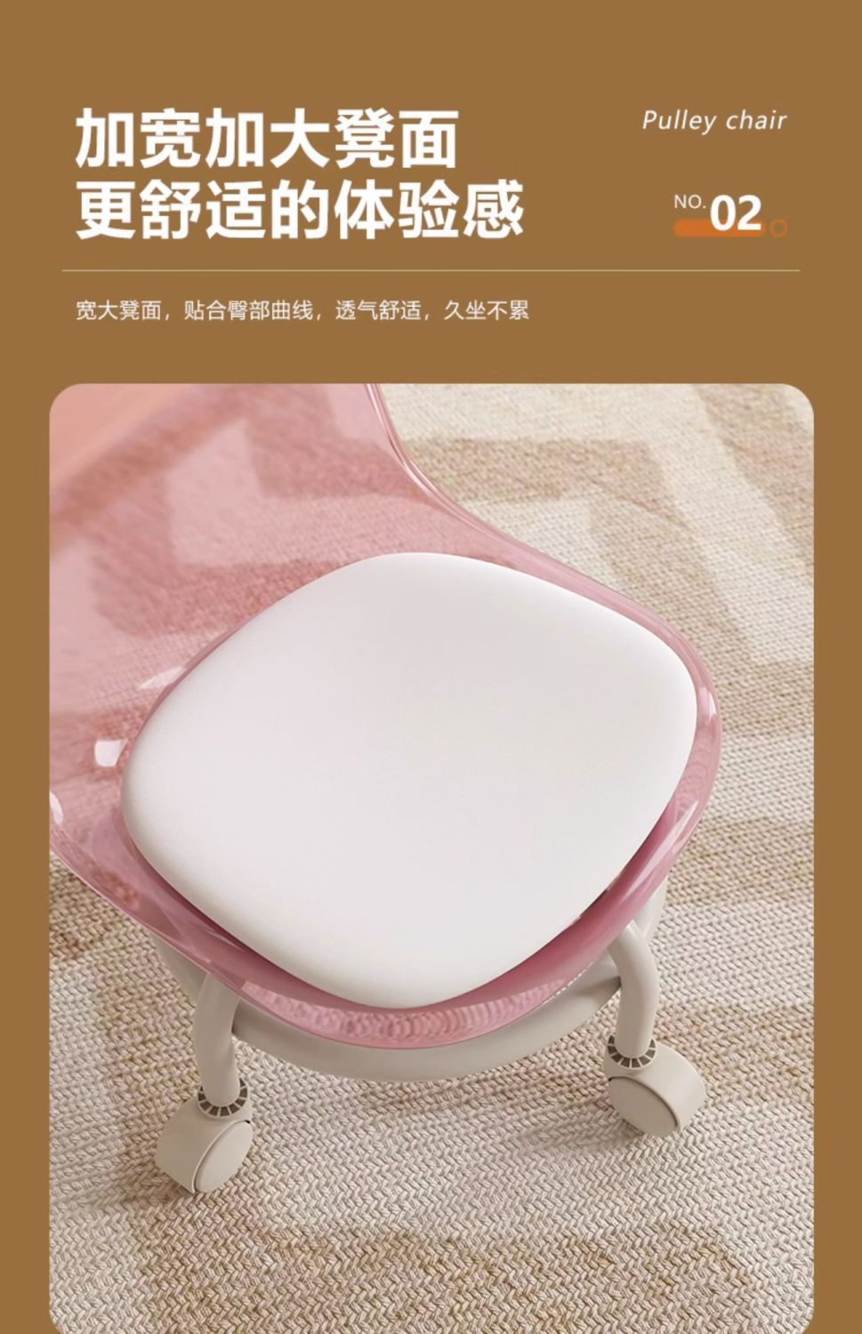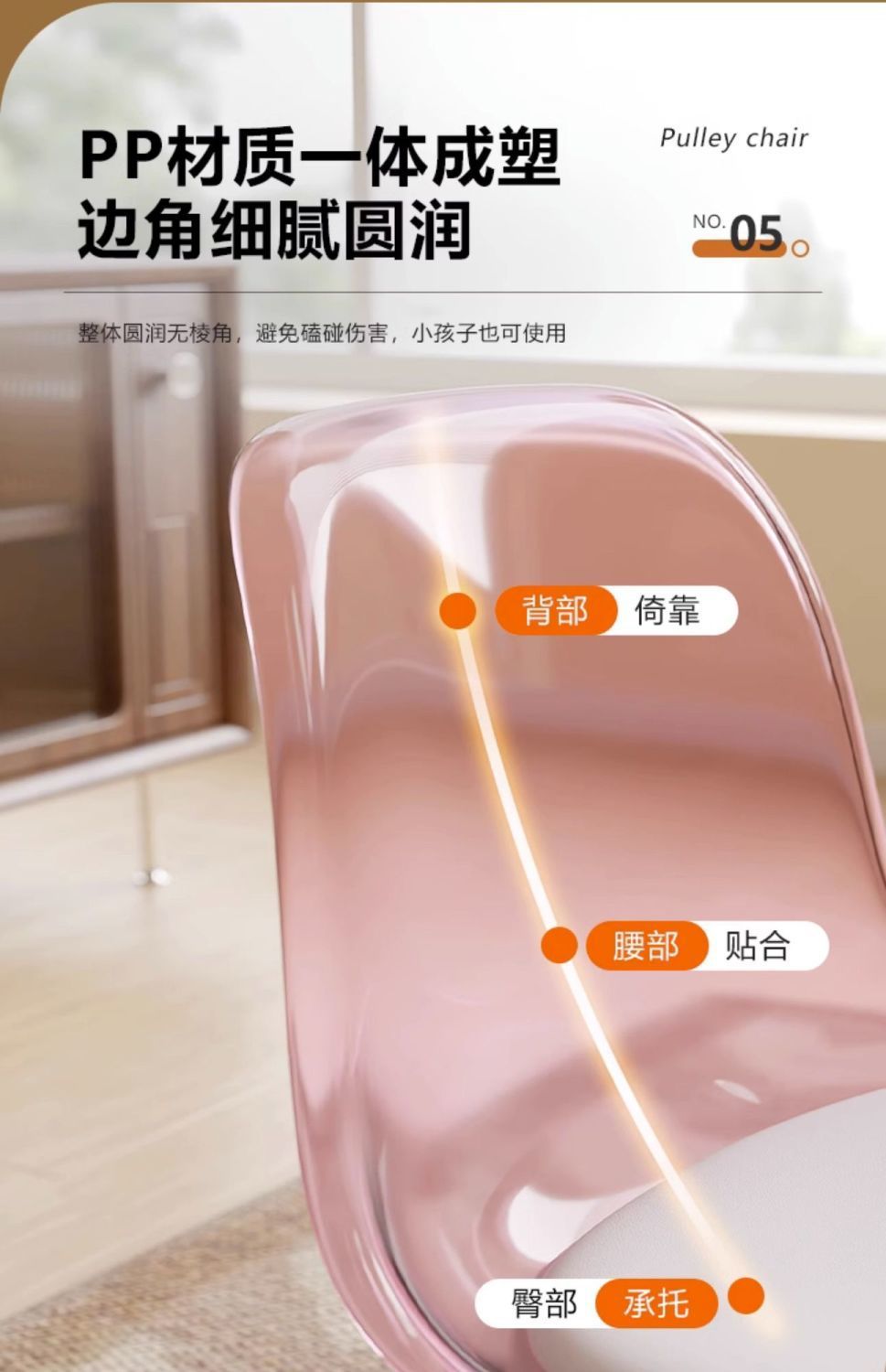 • 업그레이드된 아크릴-[투명핑크]-등받이 허리받침