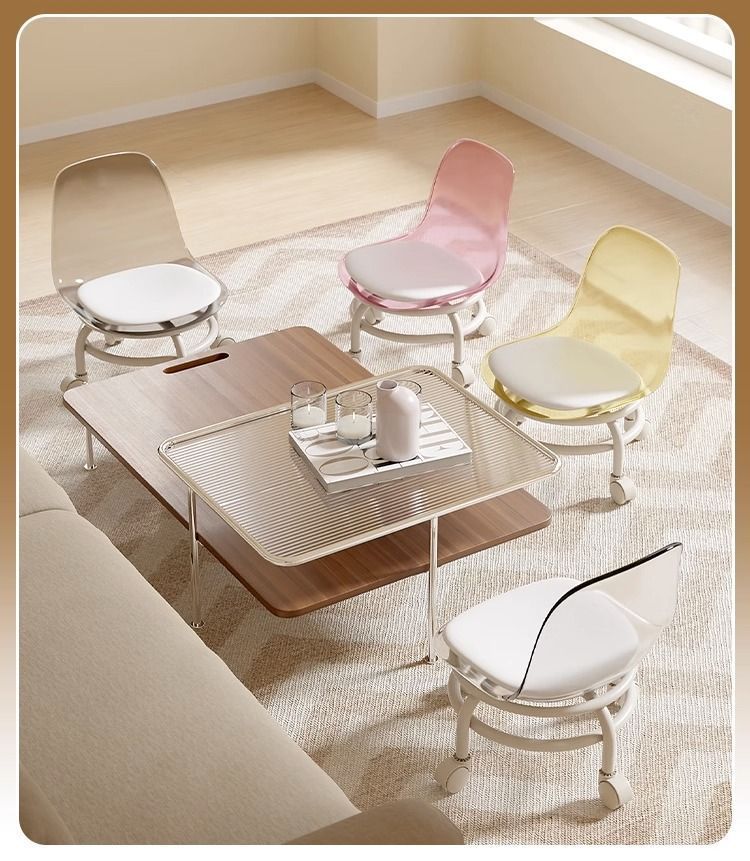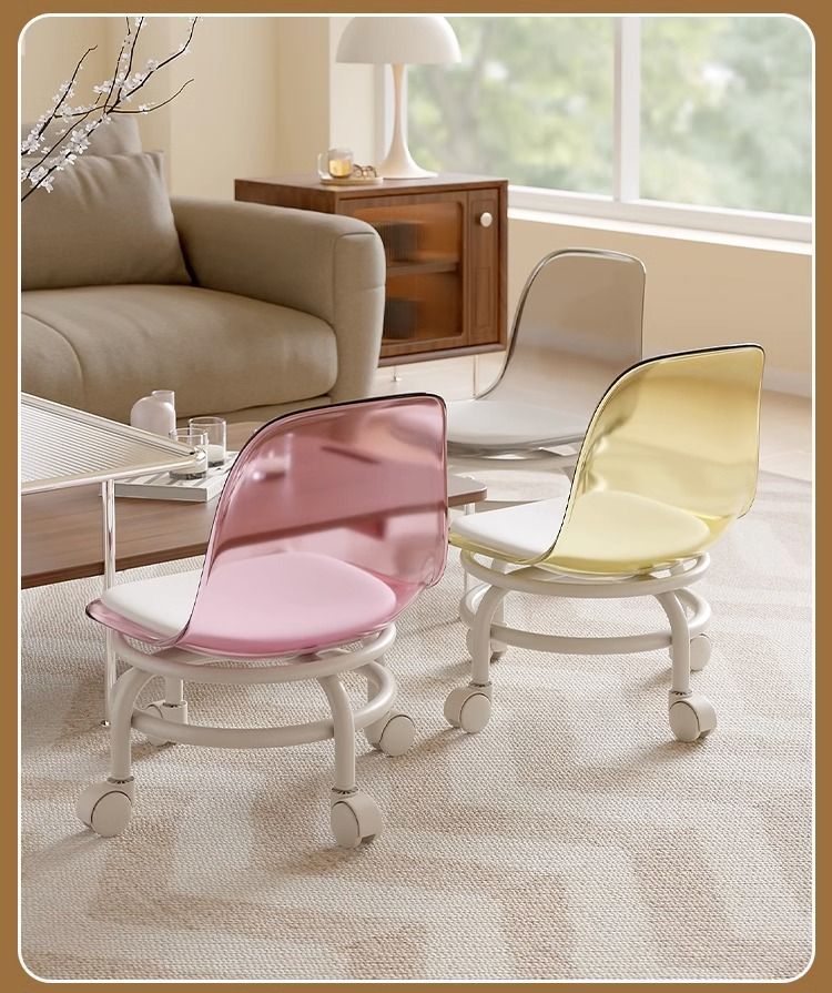 두꺼운 소형 의자, 바퀴 달린 낮은 의자, 가정용 무소음 회전 바퀴, 어린이 걸음마 연습용 이동식 등받이 의자