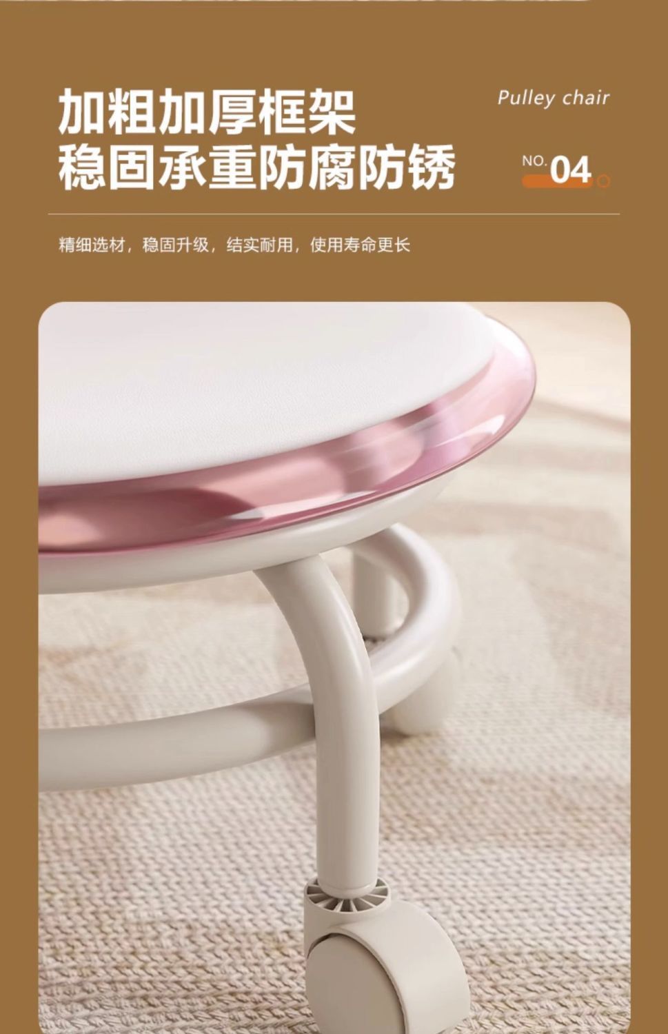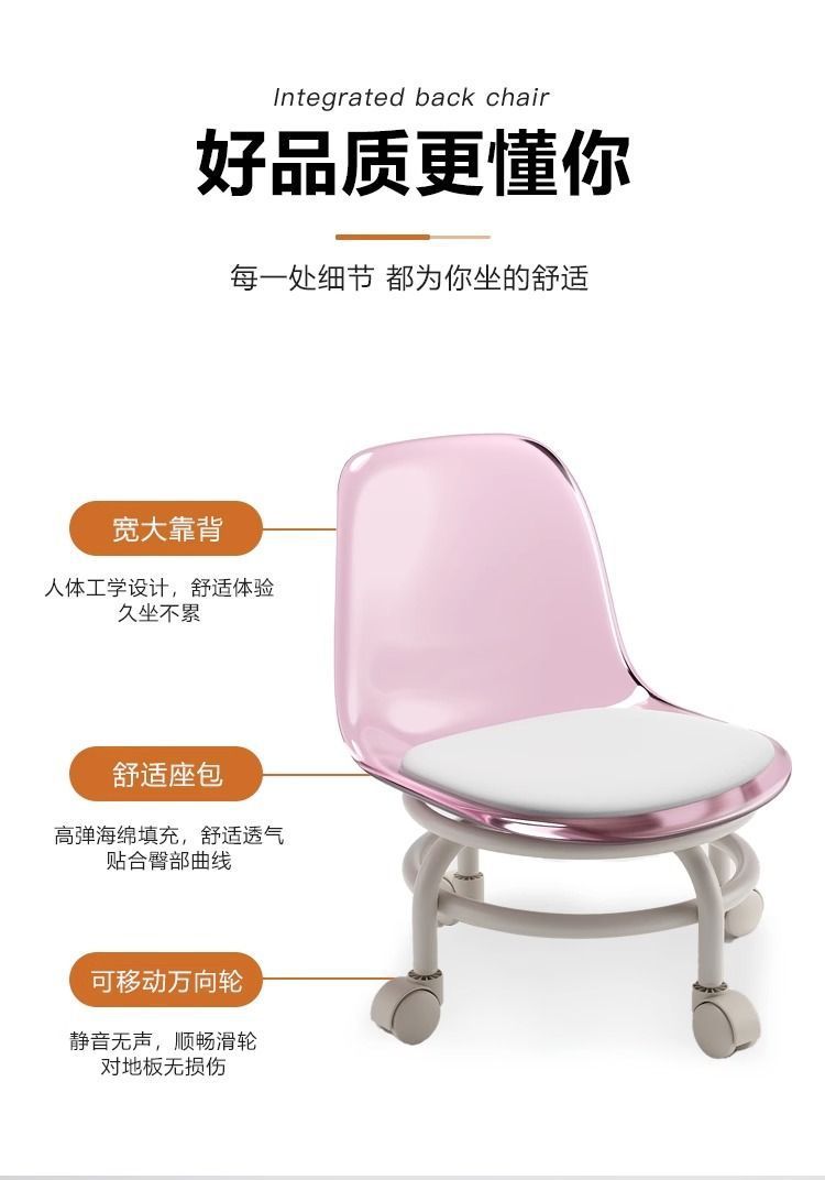 두꺼운 소형 의자, 바퀴 달린 낮은 의자, 가정용 무소음 회전 바퀴, 어린이 걸음마 연습용 이동식 등받이 의자스토어 가기