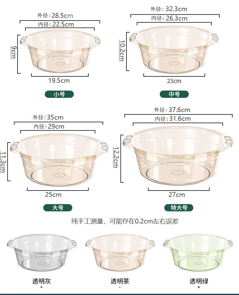 [여분의 두꺼운 투명 세면기] 분지 가정용 세면기 학생 기숙사 세탁 분지 플라스틱 분지 주방 접시 분지스토어 가기