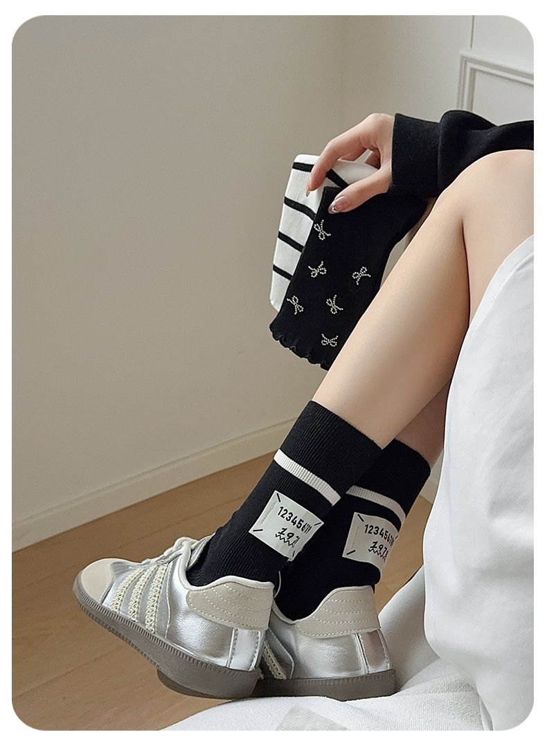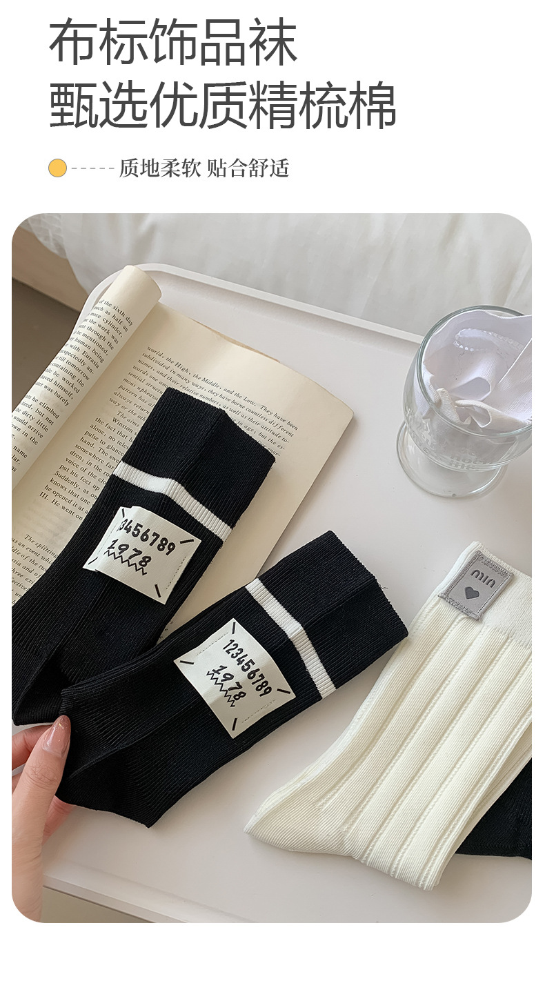 한국식 봄과 여름 더블 니들 양말 여자 심플 인 스타일 양말 올 매치 여자 통근 천 스탠다드 코튼 양말 트렌디스토어 가기