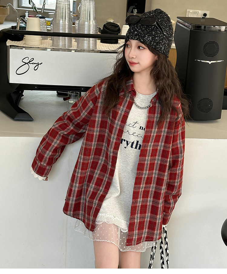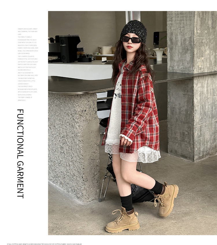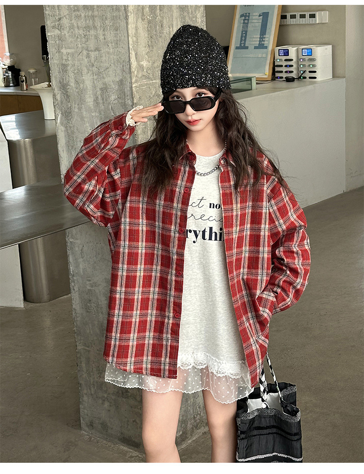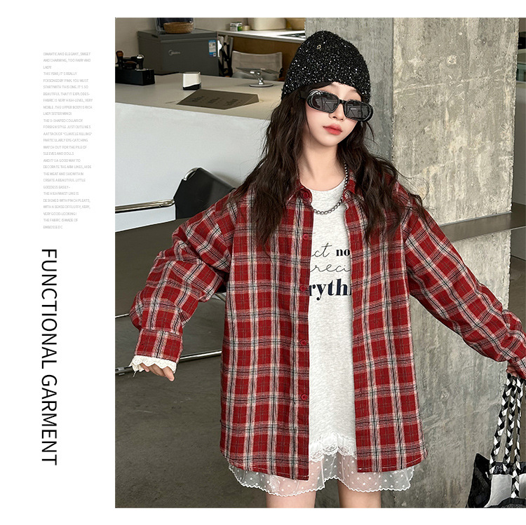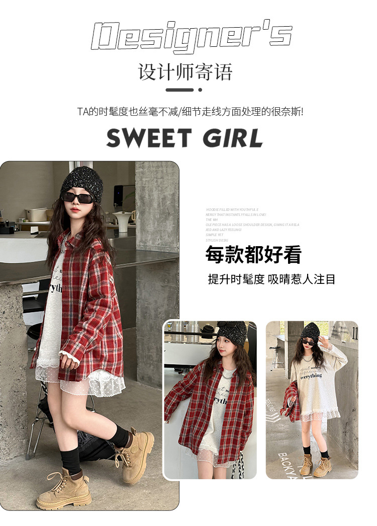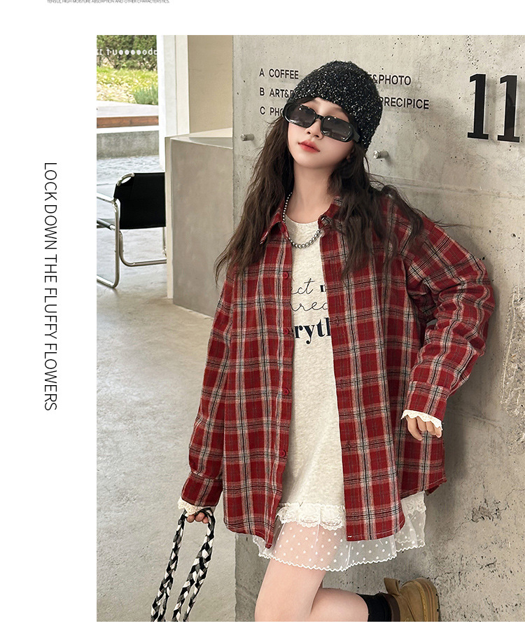 소녀 셔츠 봄과 가을 2025 새로운 어린이 서양 스타일 유행 체크 탑 중 큰 어린이 캐주얼 긴 소매 셔츠스토어 가기