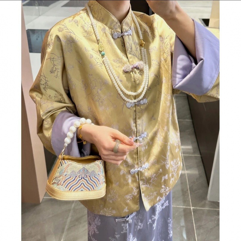 최고 봄과 가을 복고풍 봄 골동품 새로운 중국 선 세트 여성 국가 스타일 버튼 셔츠 세트