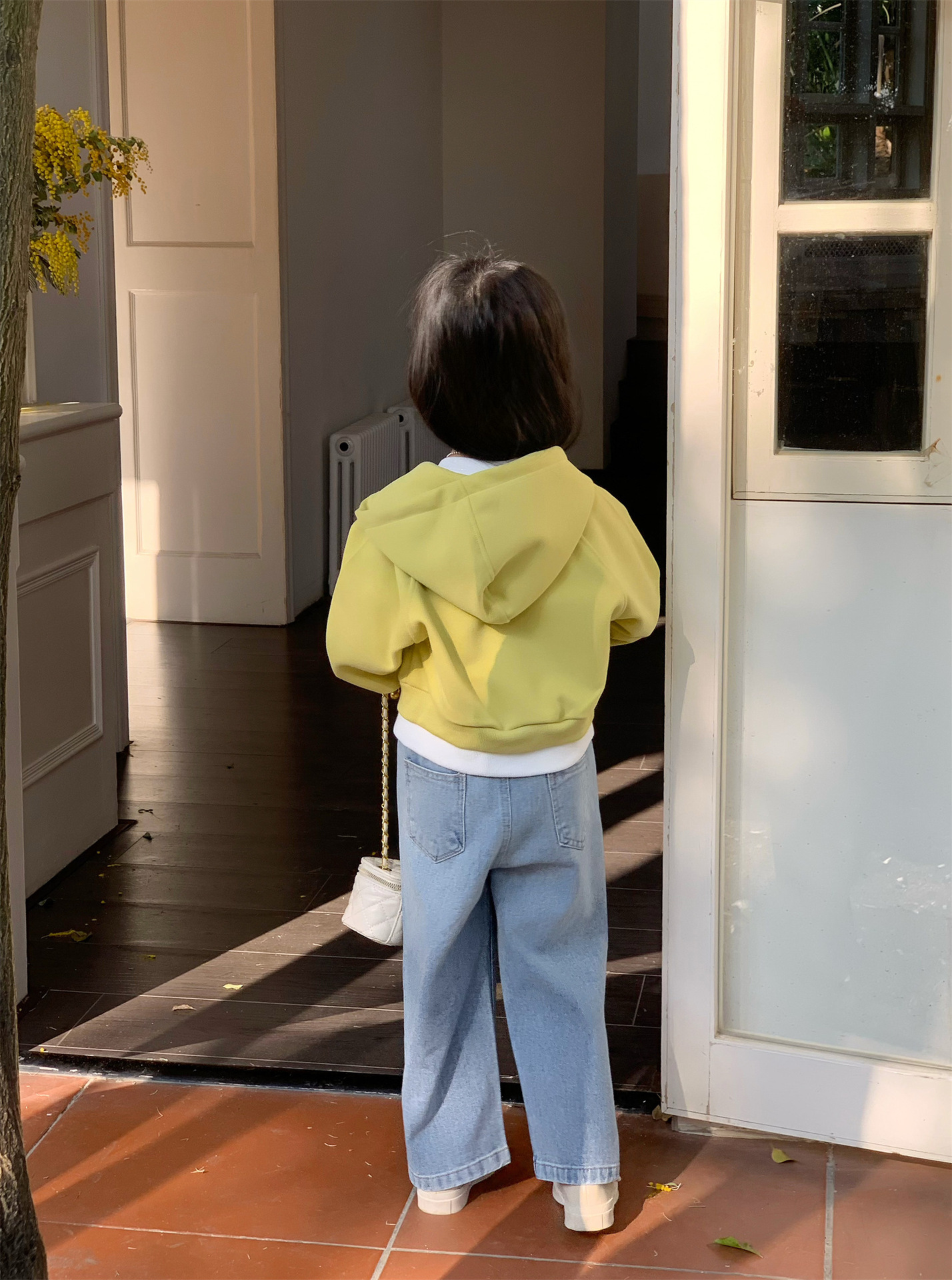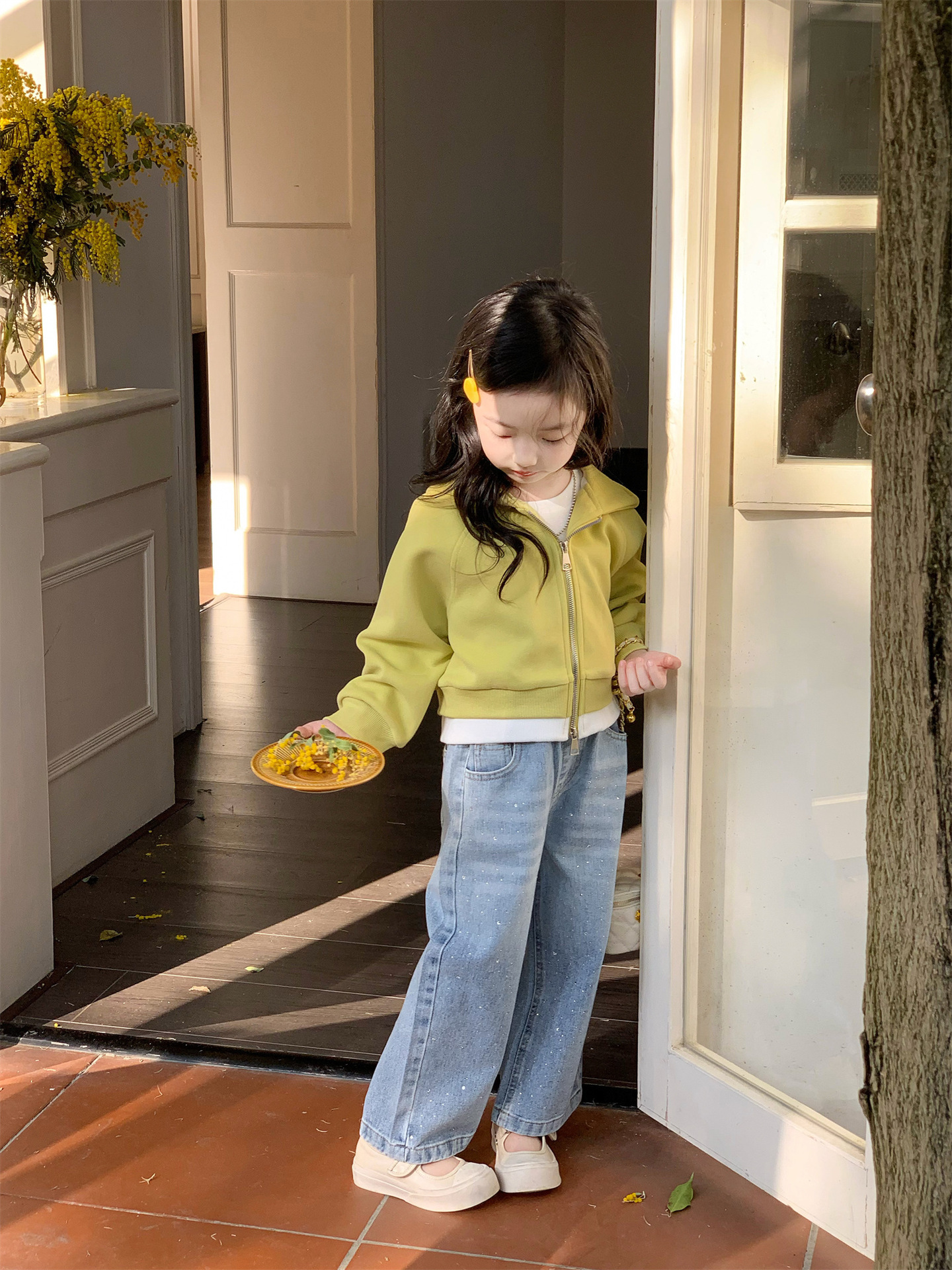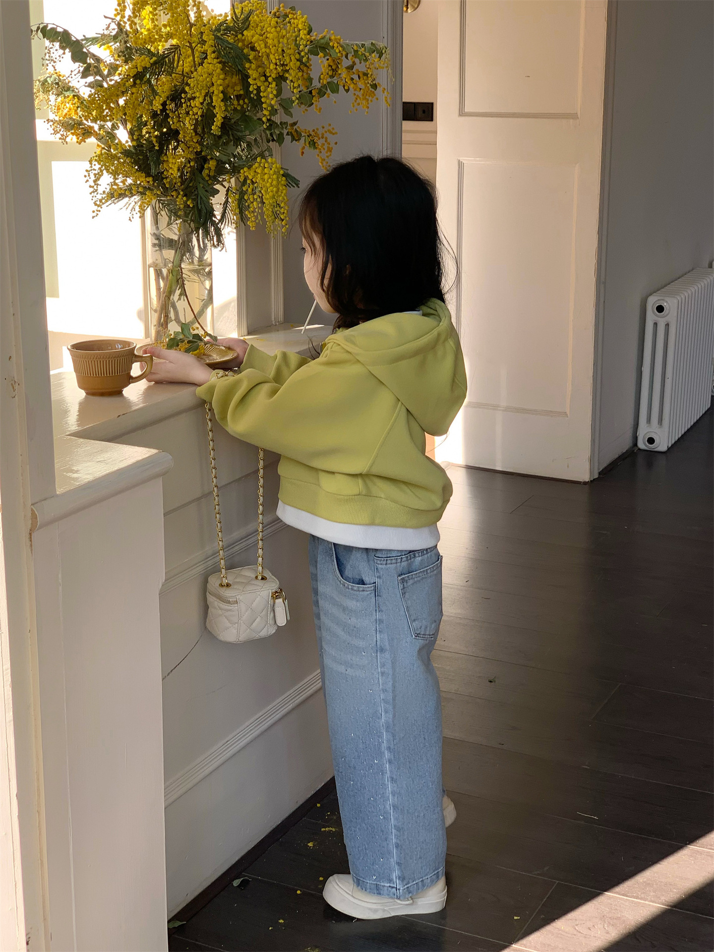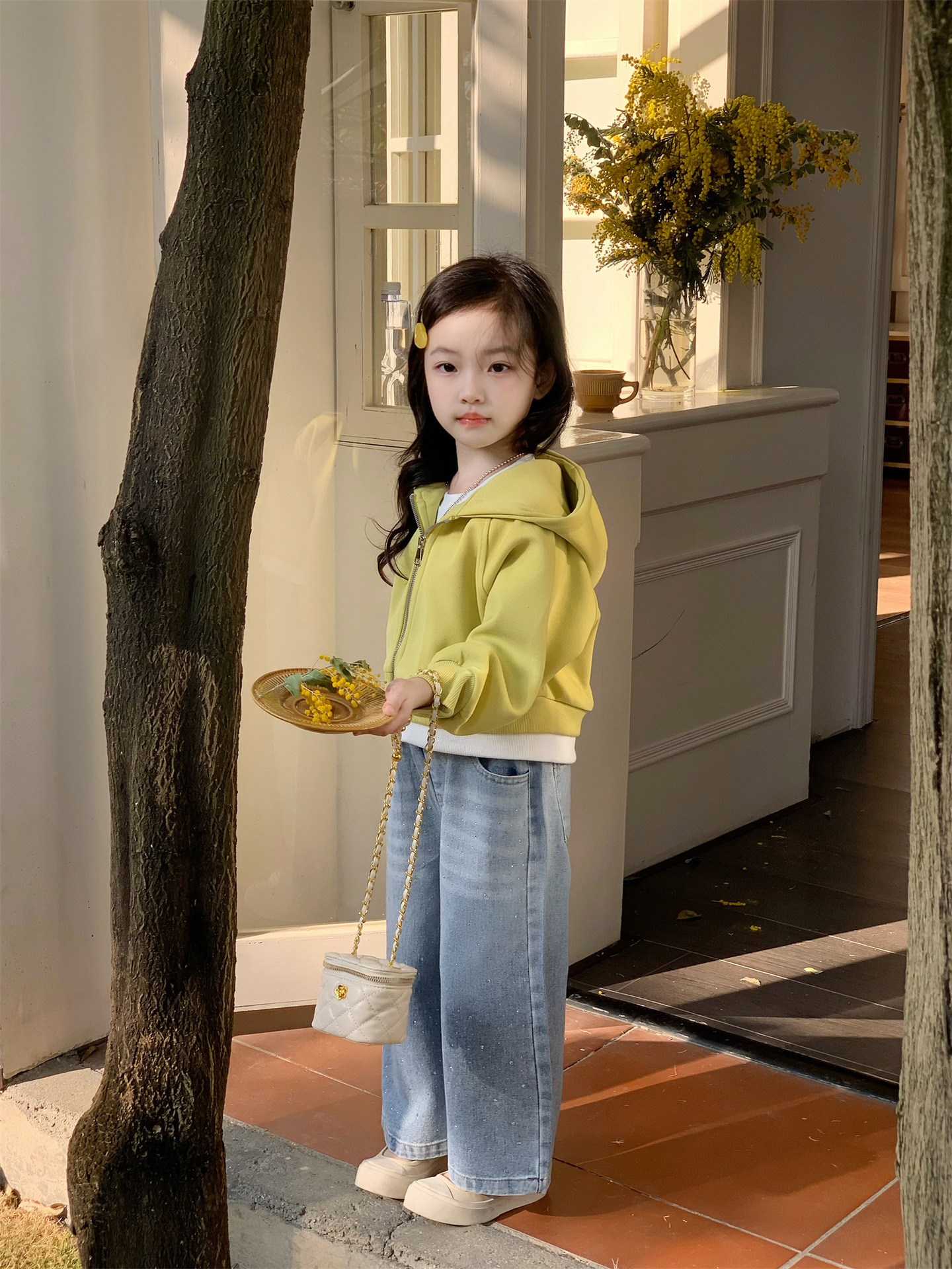 2025 봄 새로운 소녀 외국 스타일 세트 어린이 후드 카디건 코트 핫 드릴링 청바지 투피스 세트스토어 가기