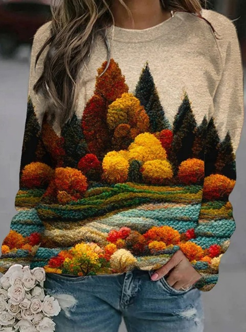 2024 아마존 국경 3d 인쇄 크루 넥 풀오버 여성용 스웨터 티셔츠 옐로우 스톤 여성용 코트스토어 가기