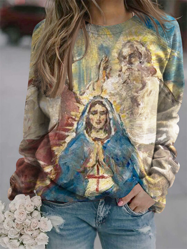 2024 아마존 국경 3d 인쇄 크루 넥 풀오버 여성용 스웨터 티셔츠 옐로우 스톤 여성용 코트