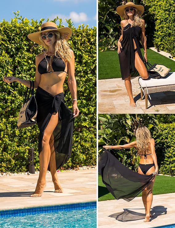여성용 사롱 수영복 블라우스 쉬폰 긴 비키니 랩 투명 비치 수영복 비치 비키니 블라우스스토어 가기