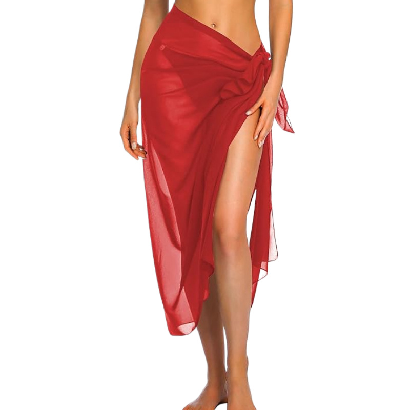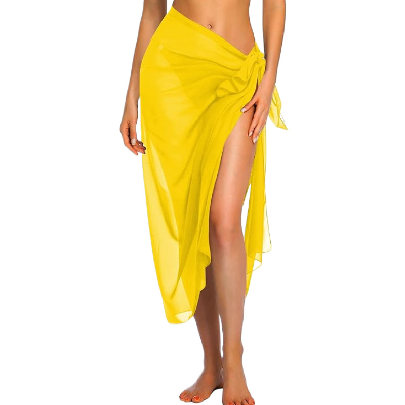 여성용 사롱 수영복 블라우스 쉬폰 긴 비키니 랩 투명 비치 수영복 비치 비키니 블라우스