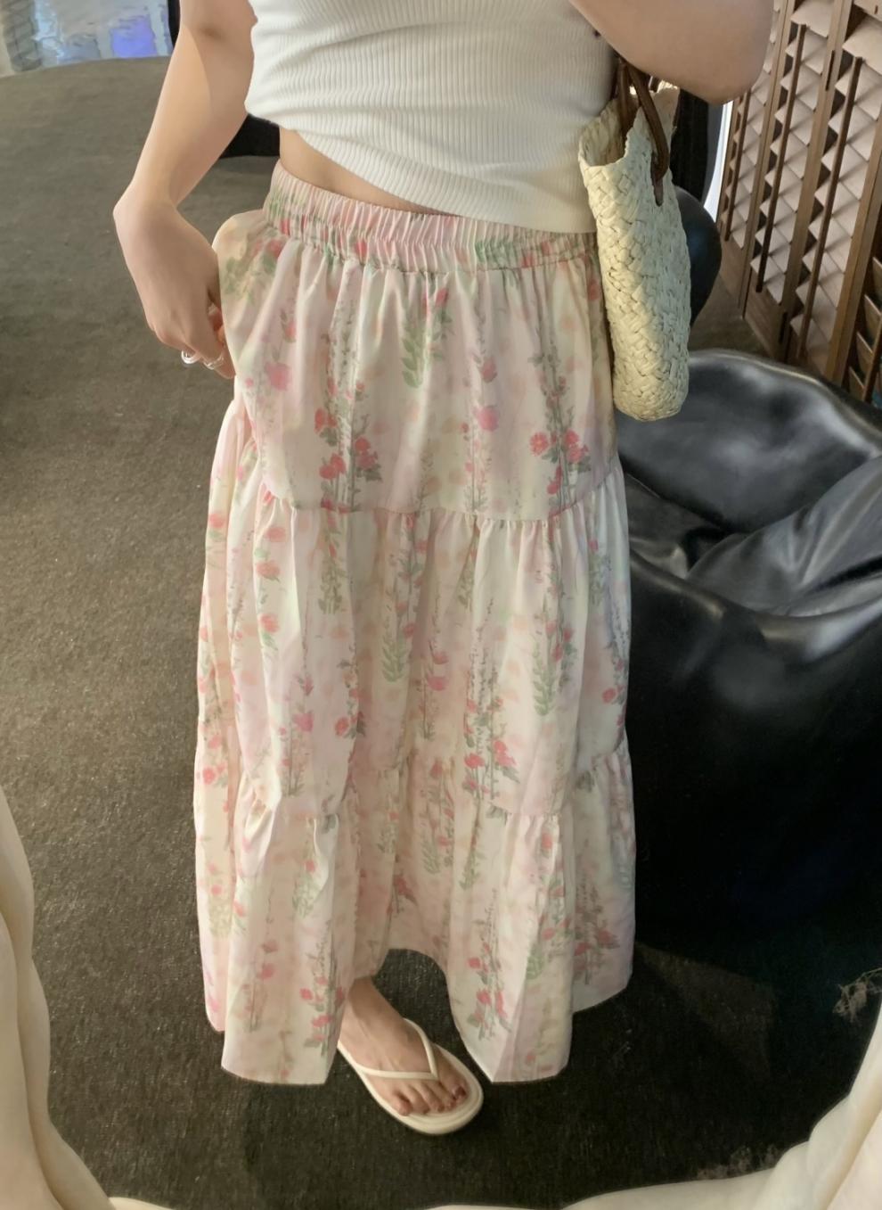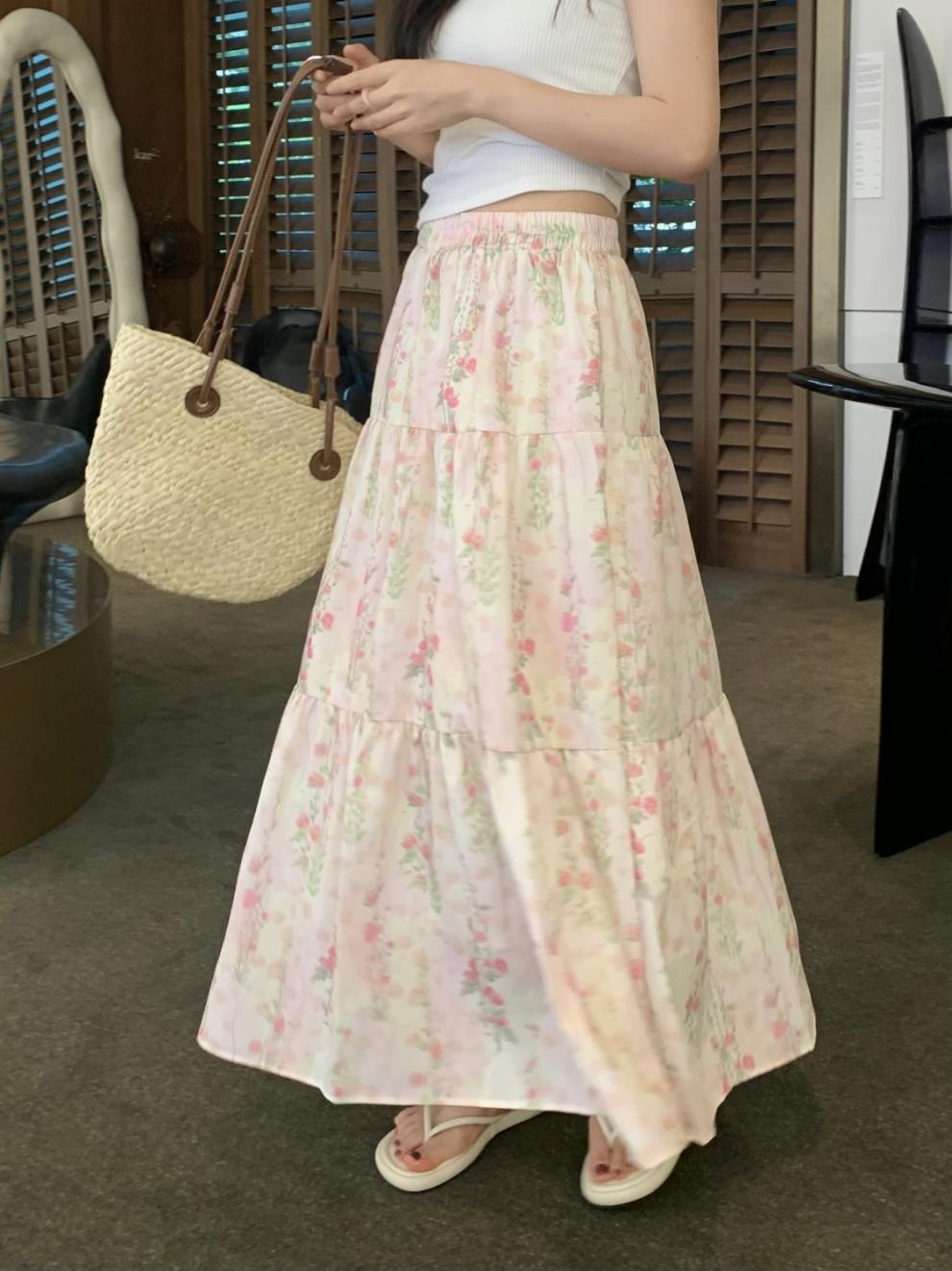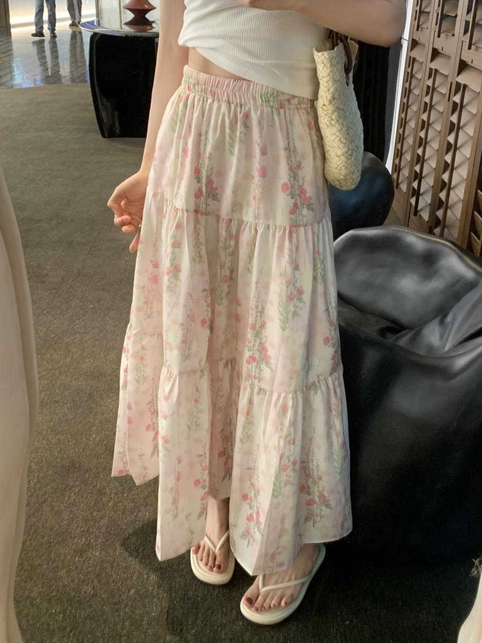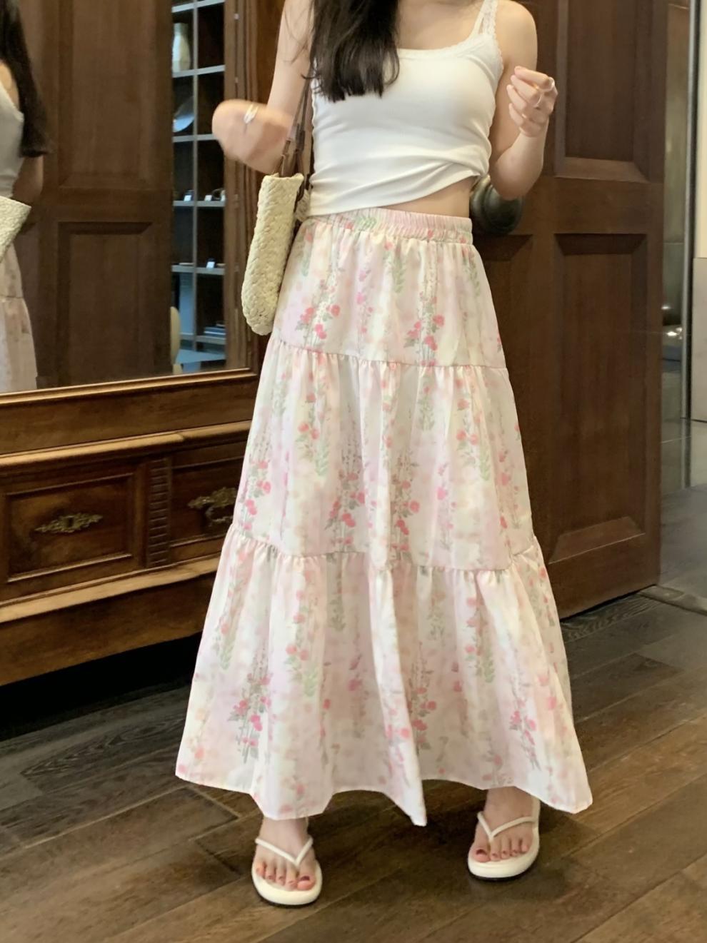프랑스 스타일 꽃 핑크 스커트 여성 높은 허리 슬림 룩 가을과 겨울 새로운 도착 올매치 틈새 우아한 롱 스커트스토어 가기