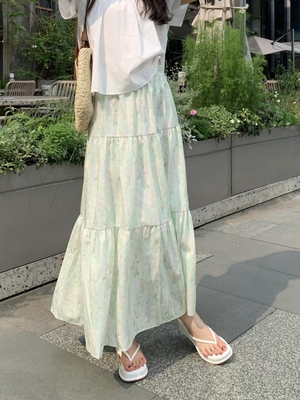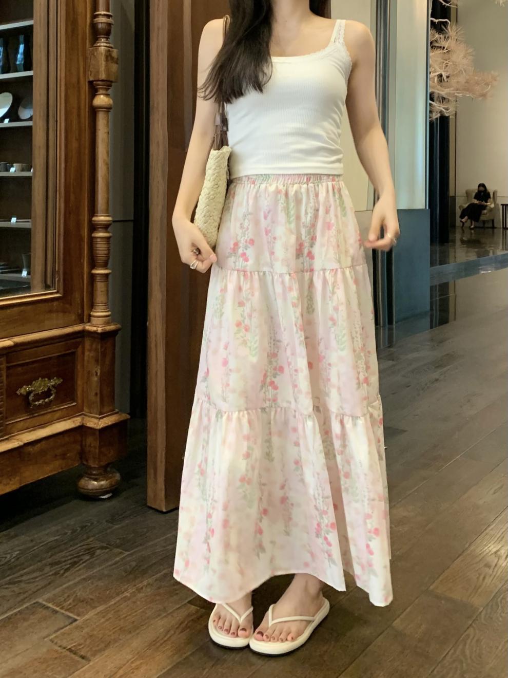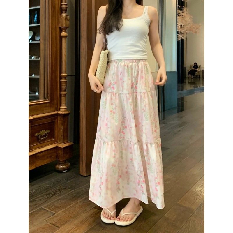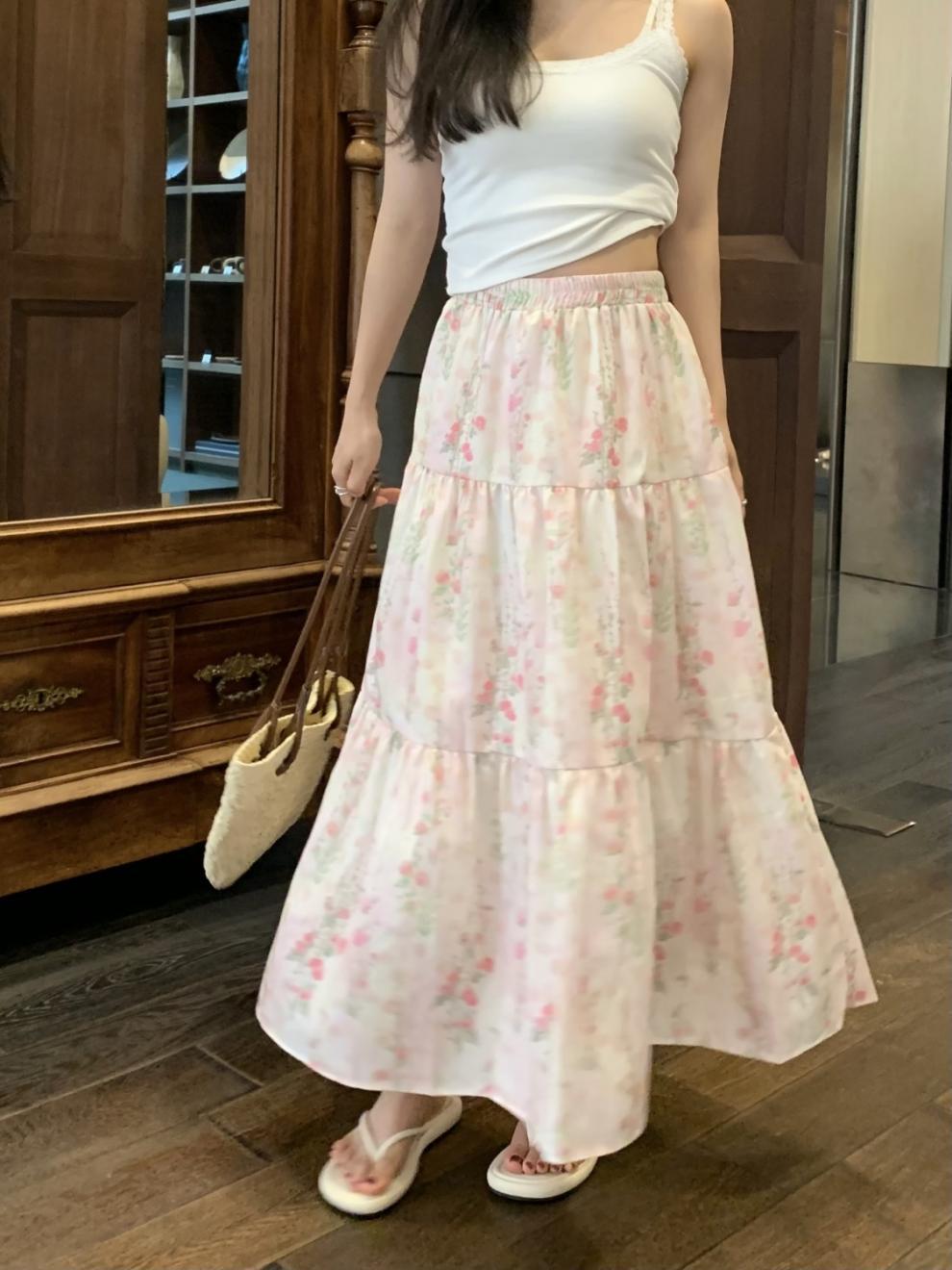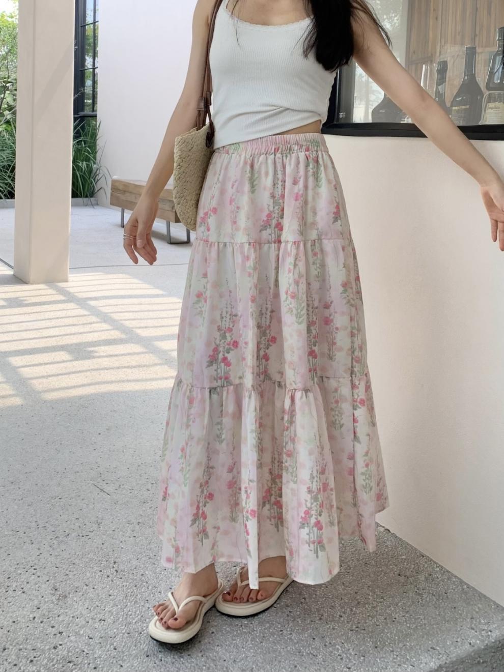 프랑스 스타일 꽃 핑크 스커트 여성 높은 허리 슬림 룩 가을과 겨울 새로운 도착 올매치 틈새 우아한 롱 스커트스토어 가기