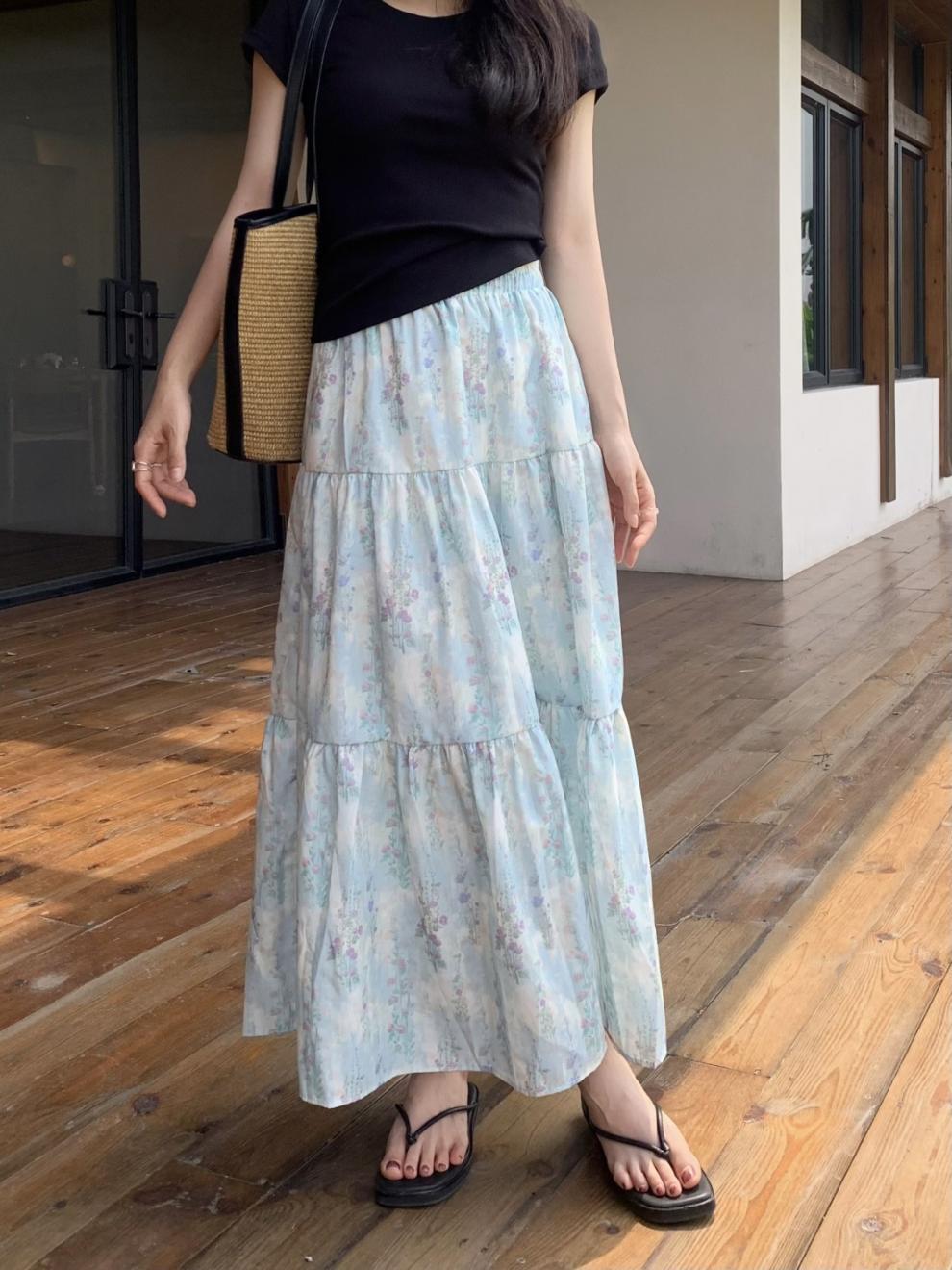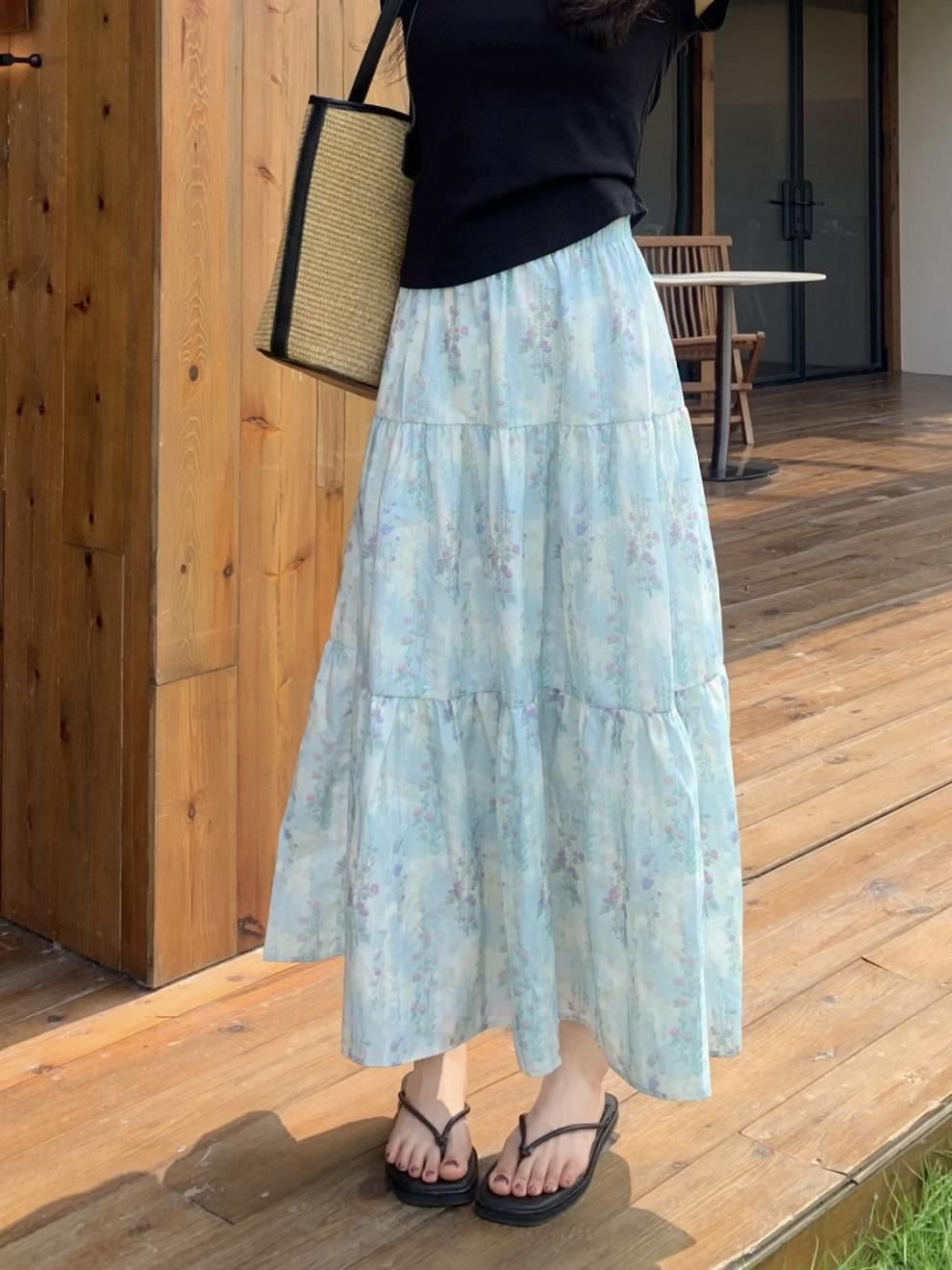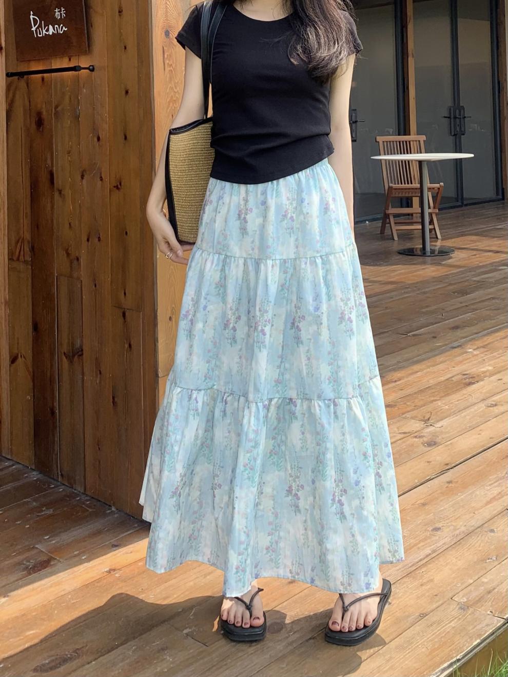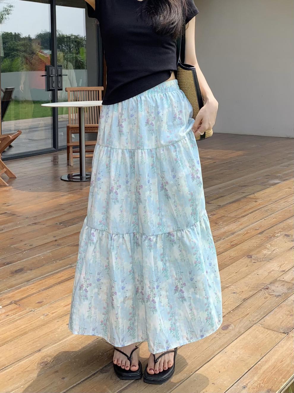 프랑스 스타일 꽃 핑크 스커트 여성 높은 허리 슬림 룩 가을과 겨울 새로운 도착 올매치 틈새 우아한 롱 스커트스토어 가기