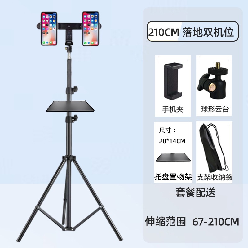 • 2.1m [강화 합금 브래킷 Qingying 듀얼 카메라 + 26CM 필 라이트 + 트레이 + 셀카 + 보관 가방