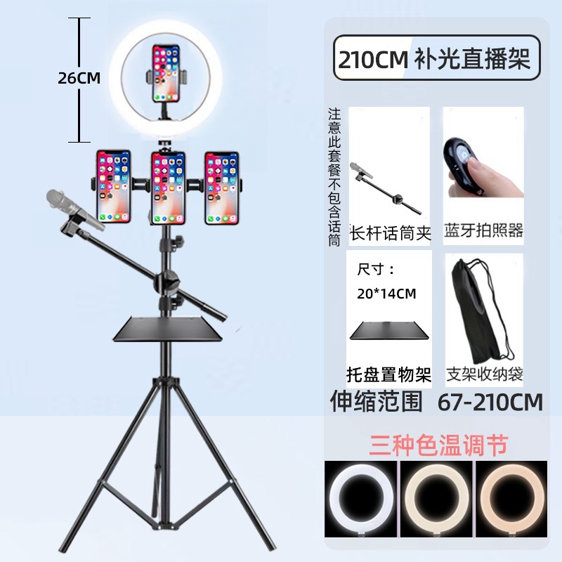 • 2.1m [강화 합금 브래킷 Qingying 3위치 + 26CM 필 라이트 + 트레이 + 셀카 + 보관 가방