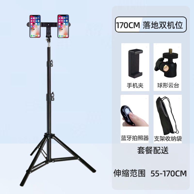 • 1.7m [강화 합금 브래킷 Qingying 듀얼 카메라 + 26CM 필 라이트 + 트레이 + 셀카 + 보관 가방