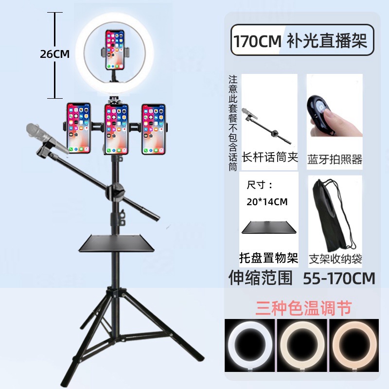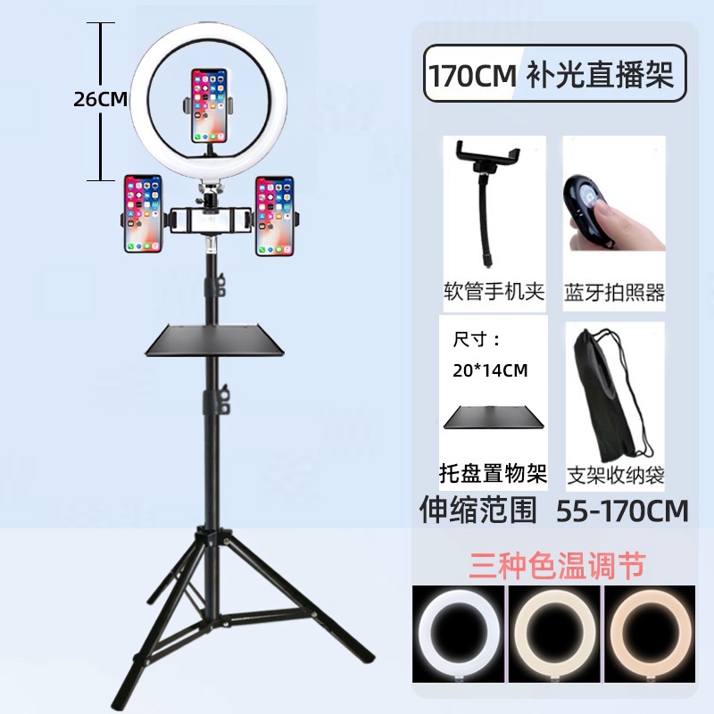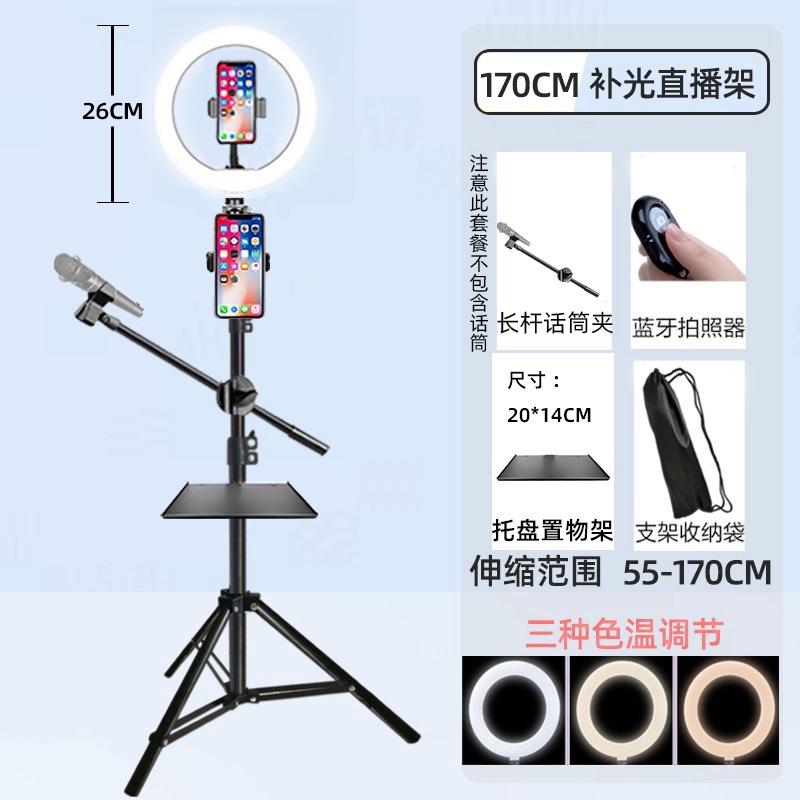 • 1.7m [강화 합금 브래킷 Qingying 단일 카메라 + 26CM 필 라이트 + 트레이 + 셀카 + 보관 가방