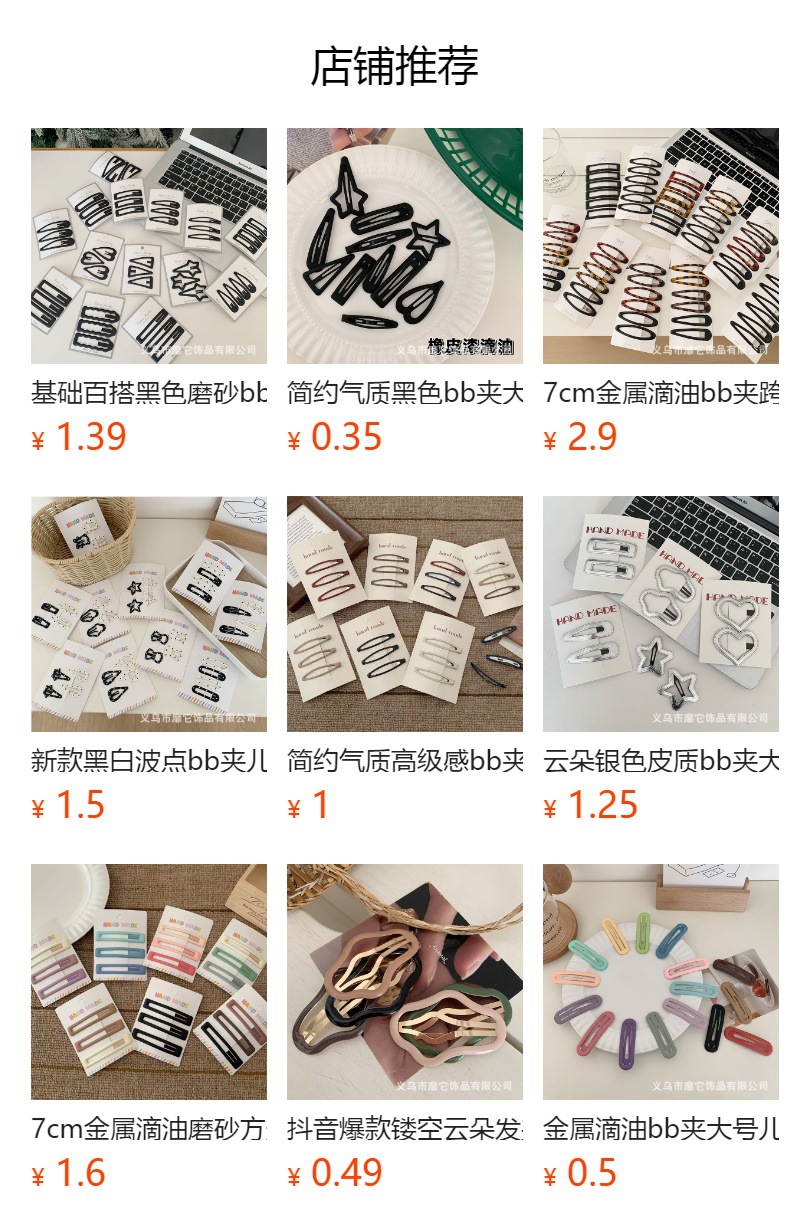 기본 다용도 블랙 무광 BB 클립 대형 메탈 드롭 오일 물방울 헤어핀 앞머리 옆머리 집게핀 헤어 액세서리 도매스토어 가기