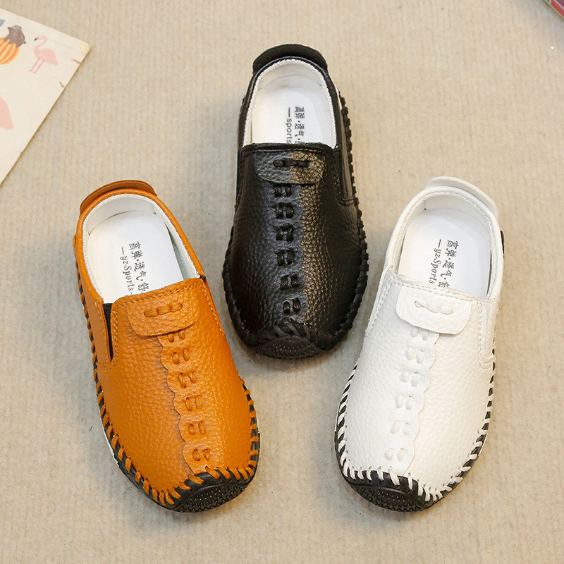 2025 봄과 가을 새로운 어린이 가죽 신발 소년 영국 스타일 부드러운 바닥 콩 신발 슬립 온 캐주얼 신발