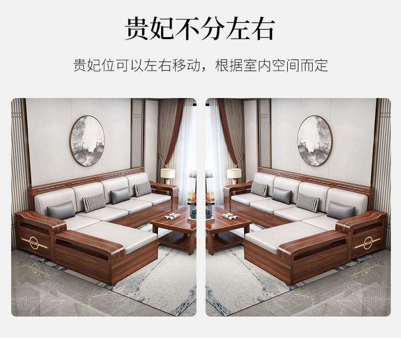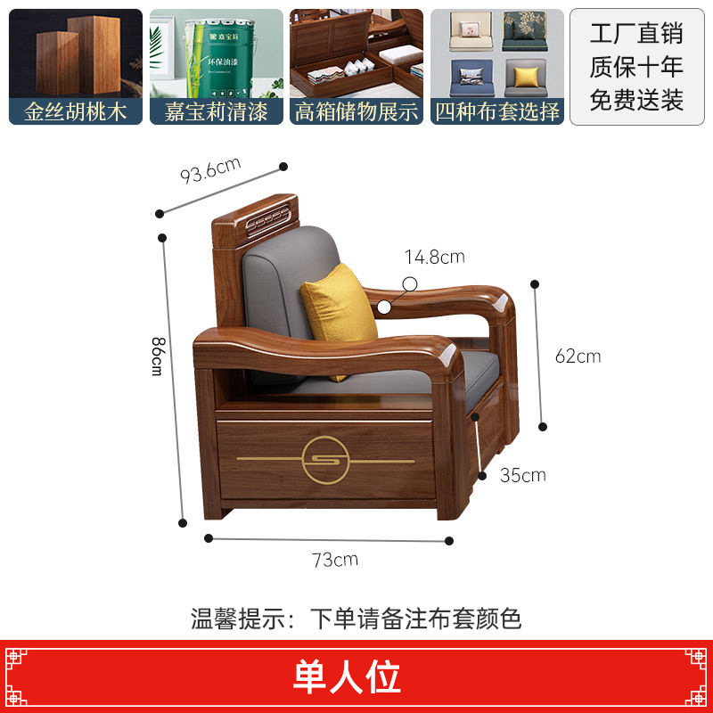 골드 실크 호두 솔리드 우드 소파 조합 거실 크고 작은 아파트 겨울과 여름 듀얼 사용 새로운 중국 스타일 조각 저장 소파스토어 가기