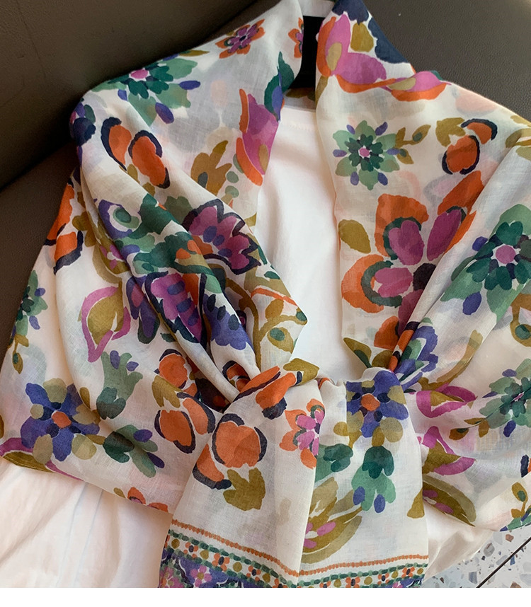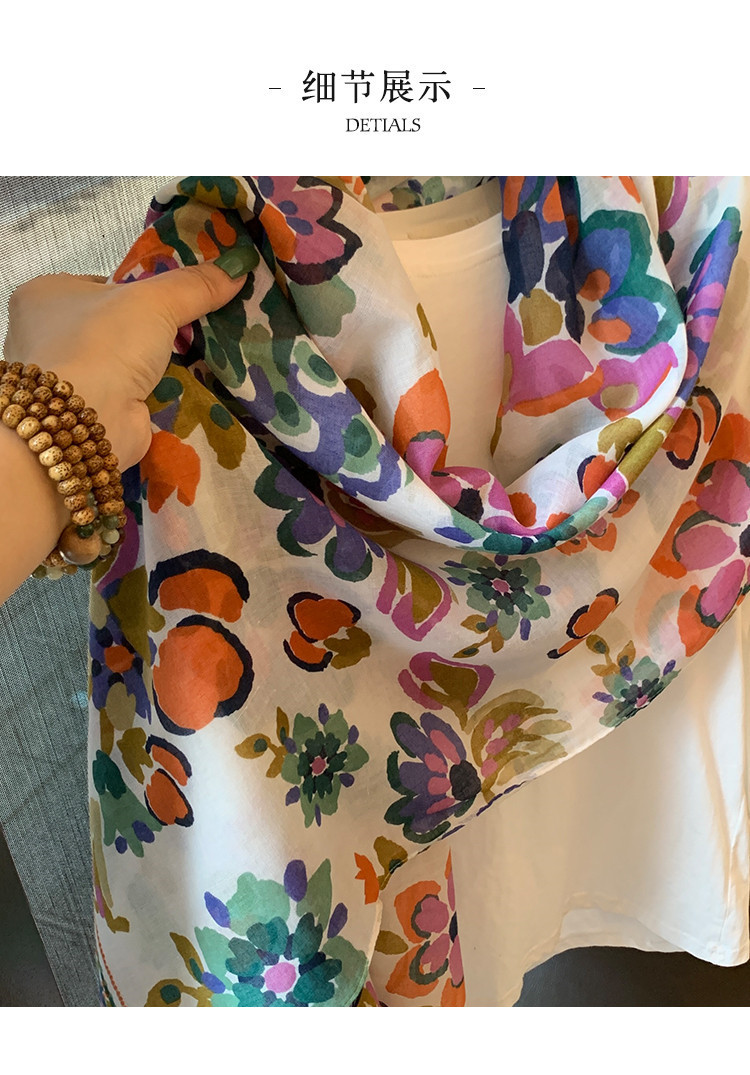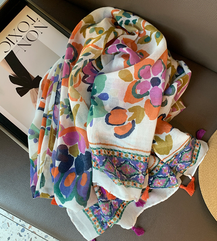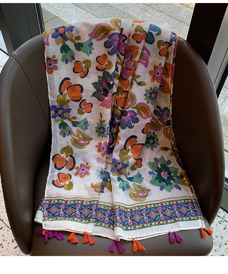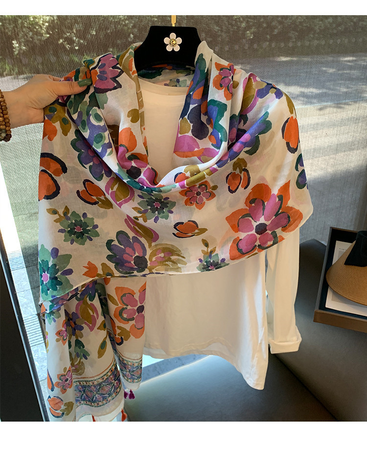 실크 스카프 여성면 및 린넨 스카프 봄과 여름 새로운 지적 아름다운 브로케이드 꽃 술 선 스크린 관광 해변 흰색 목도리