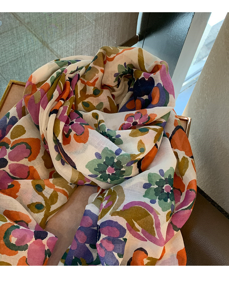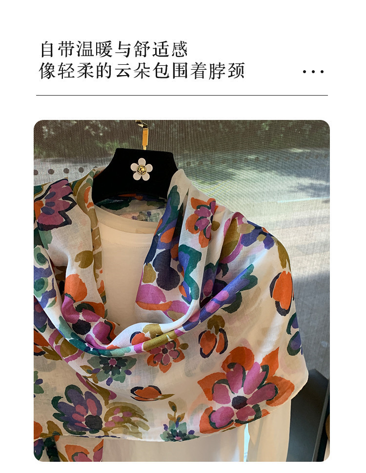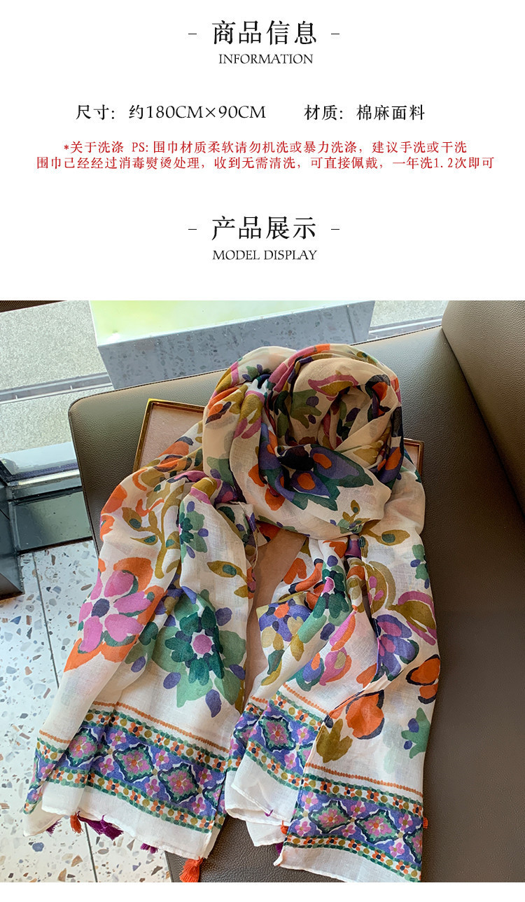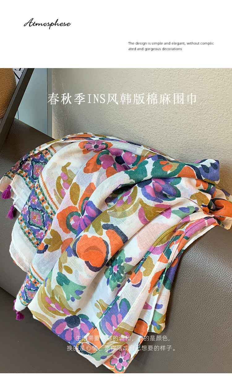 실크 스카프 여성면 및 린넨 스카프 봄과 여름 새로운 지적 아름다운 브로케이드 꽃 술 선 스크린 관광 해변 흰색 목도리
