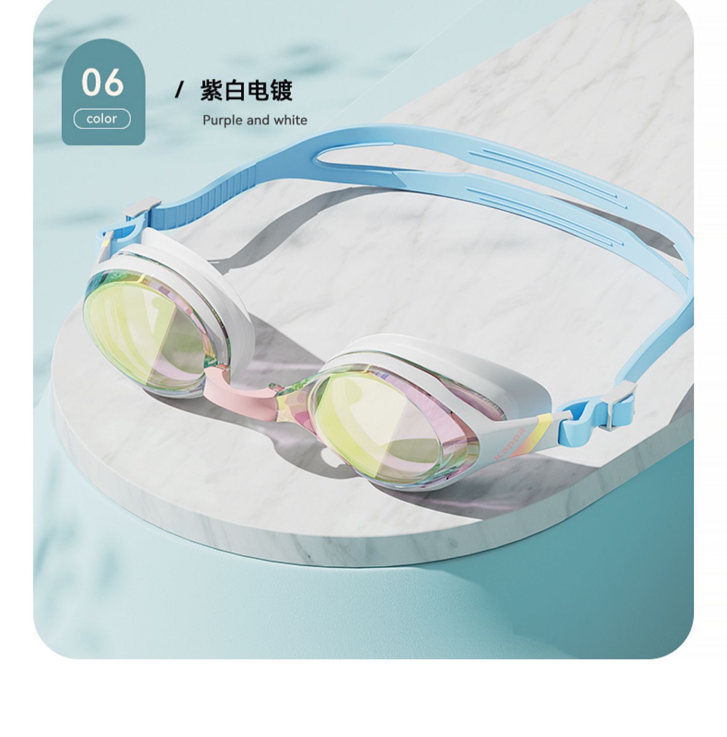 • 플랫 퍼플 화이트 [전기도금 스타일] [수영 고글 + 수영 모자]