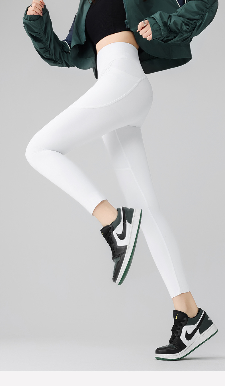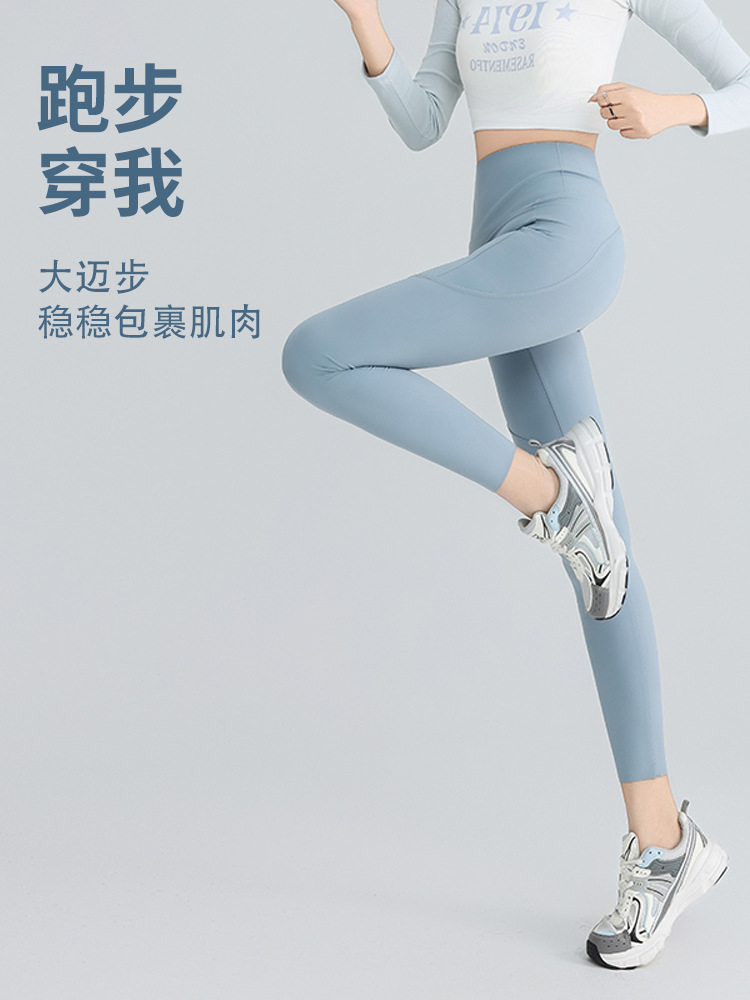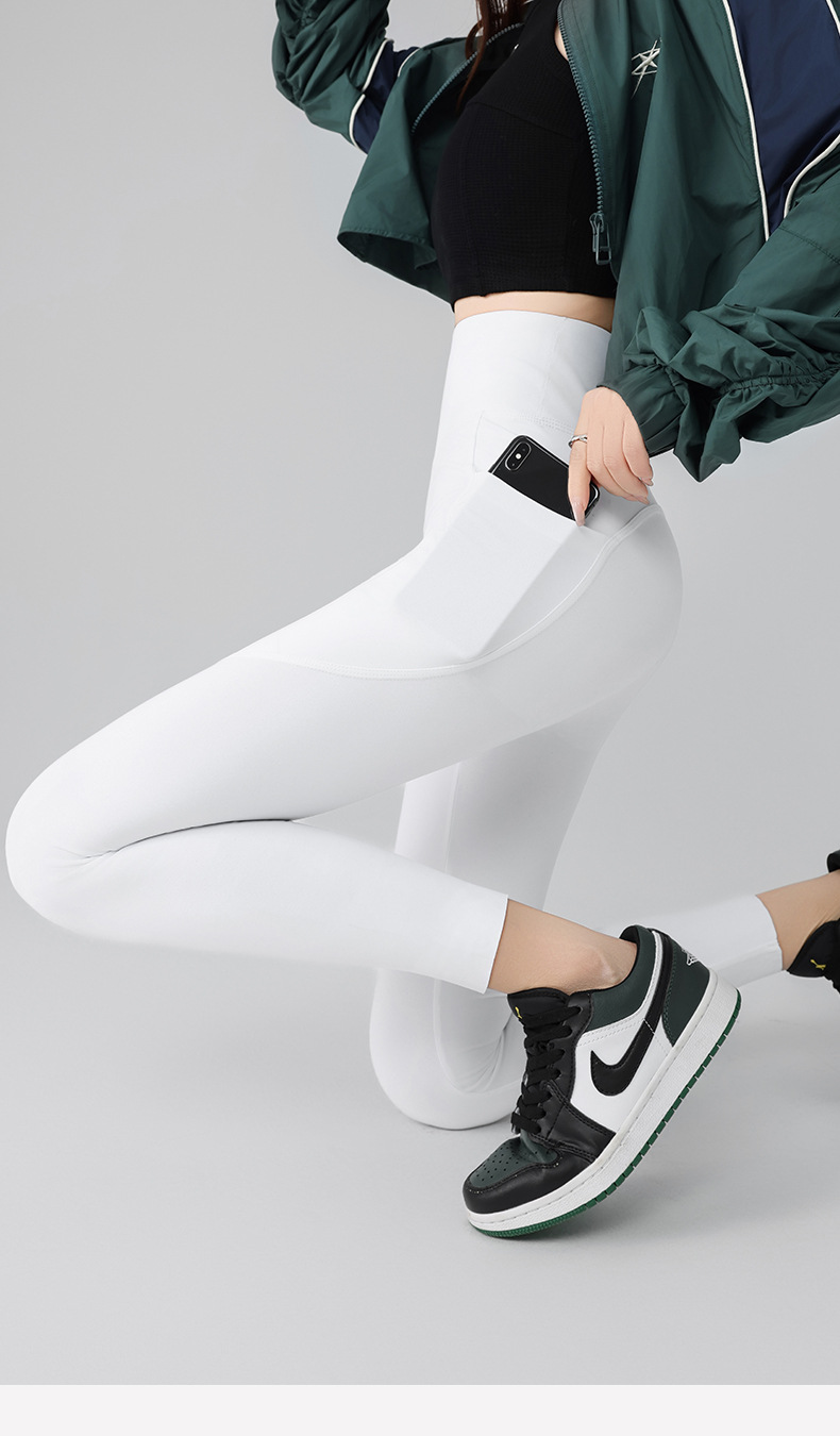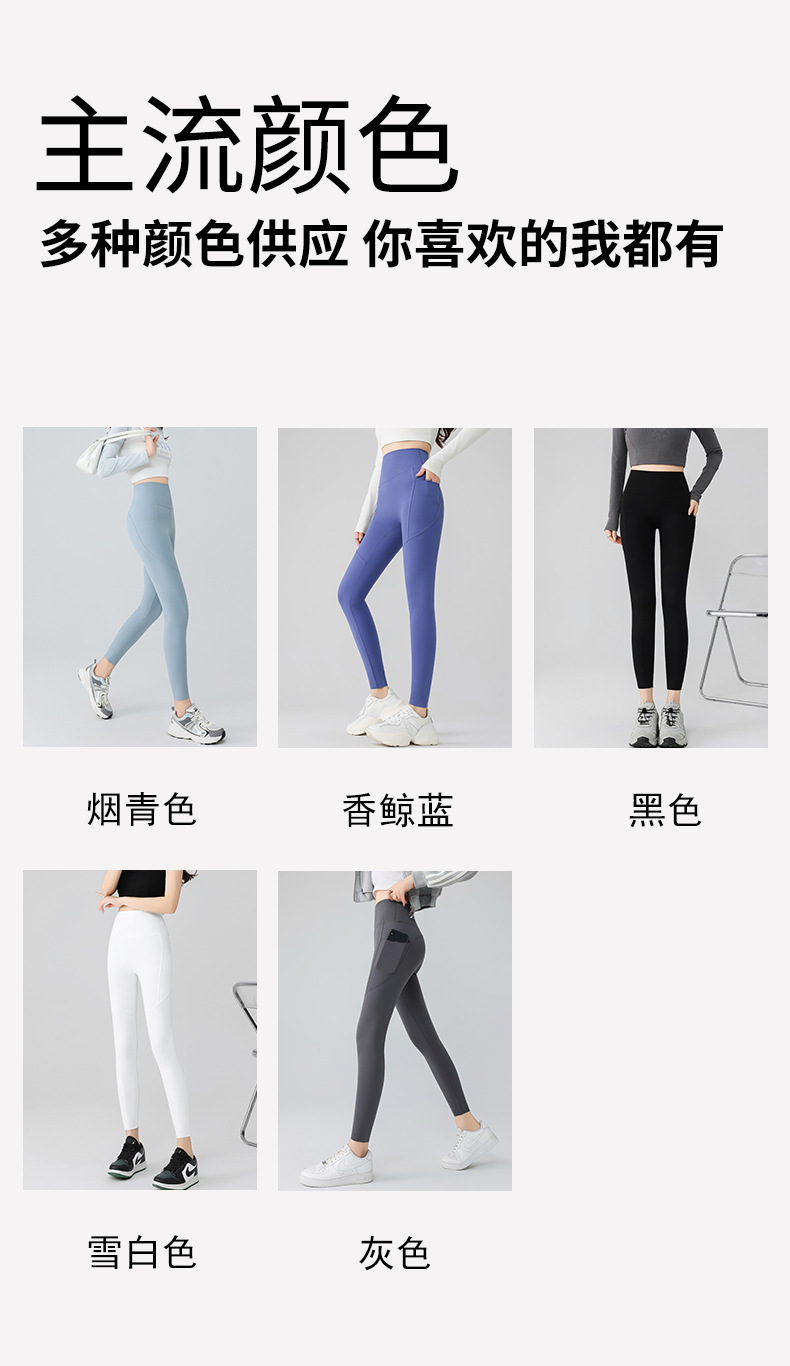 더블 포켓 요가 바지 여성의 봄과 여름 외부 착용 꽉 높은 허리 엉덩이 리프팅 스포츠 달리기 전문 훈련 피트니스 바지스토어 가기
