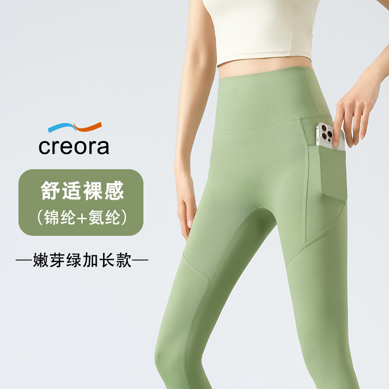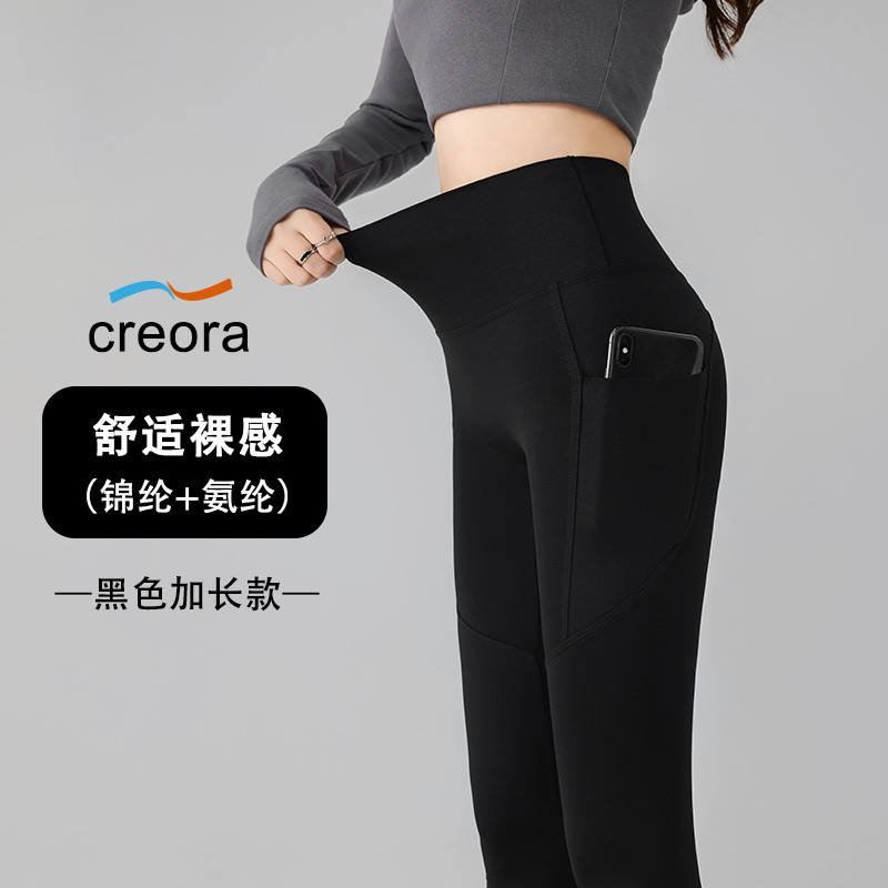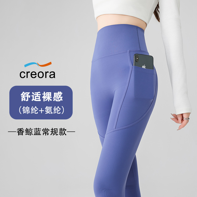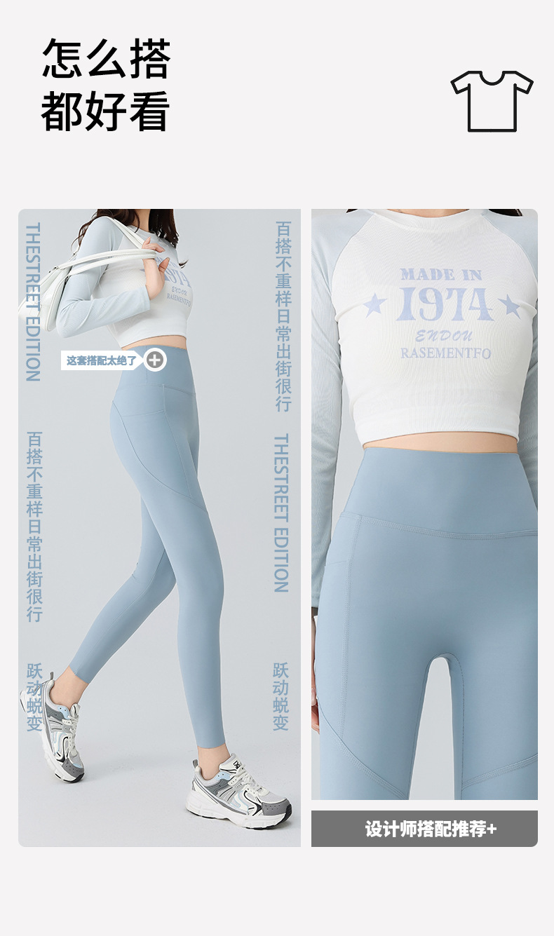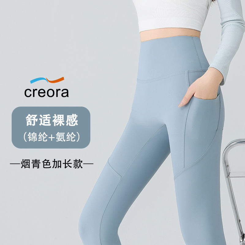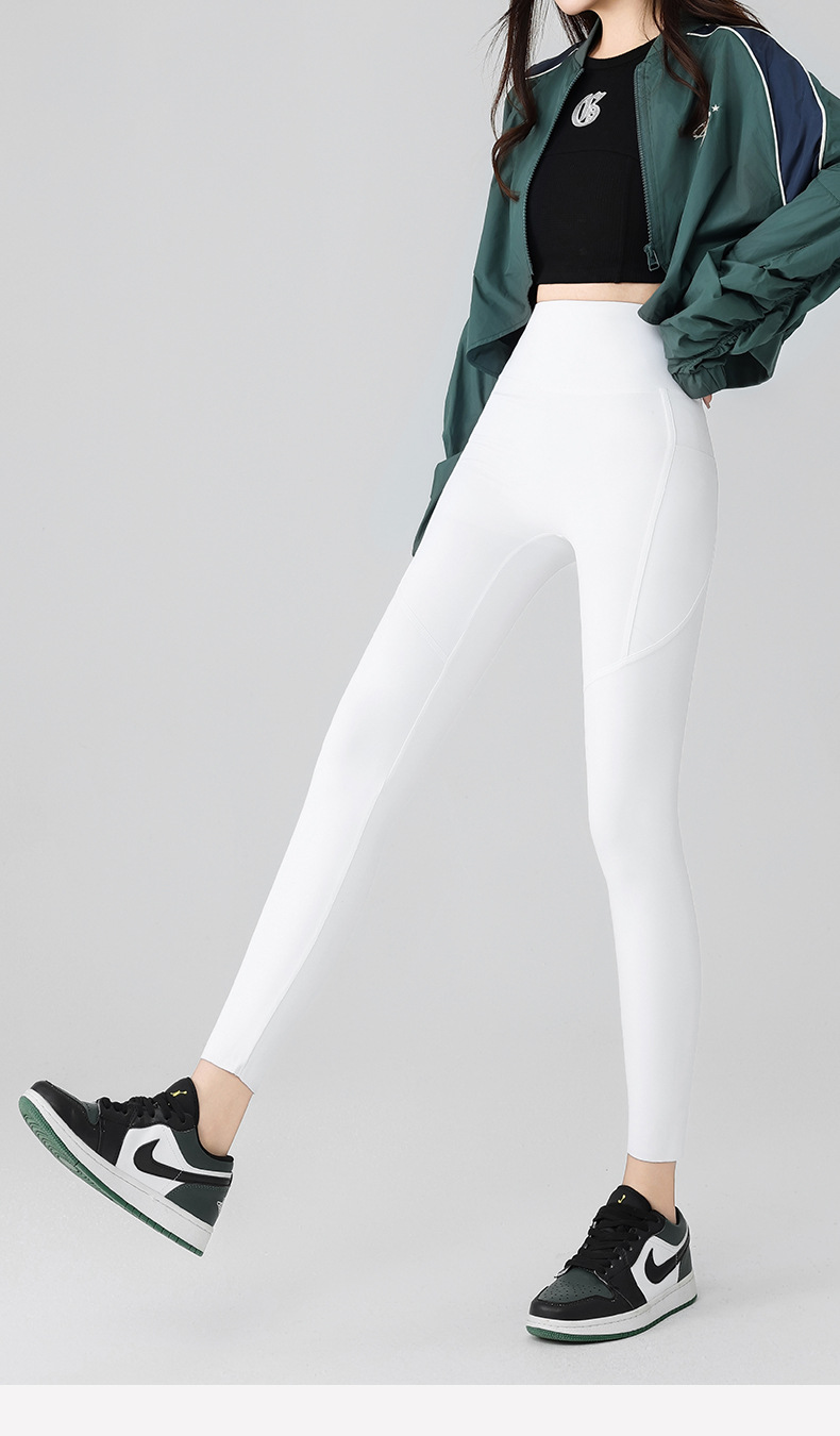 더블 포켓 요가 바지 여성의 봄과 여름 외부 착용 꽉 높은 허리 엉덩이 리프팅 스포츠 달리기 전문 훈련 피트니스 바지스토어 가기