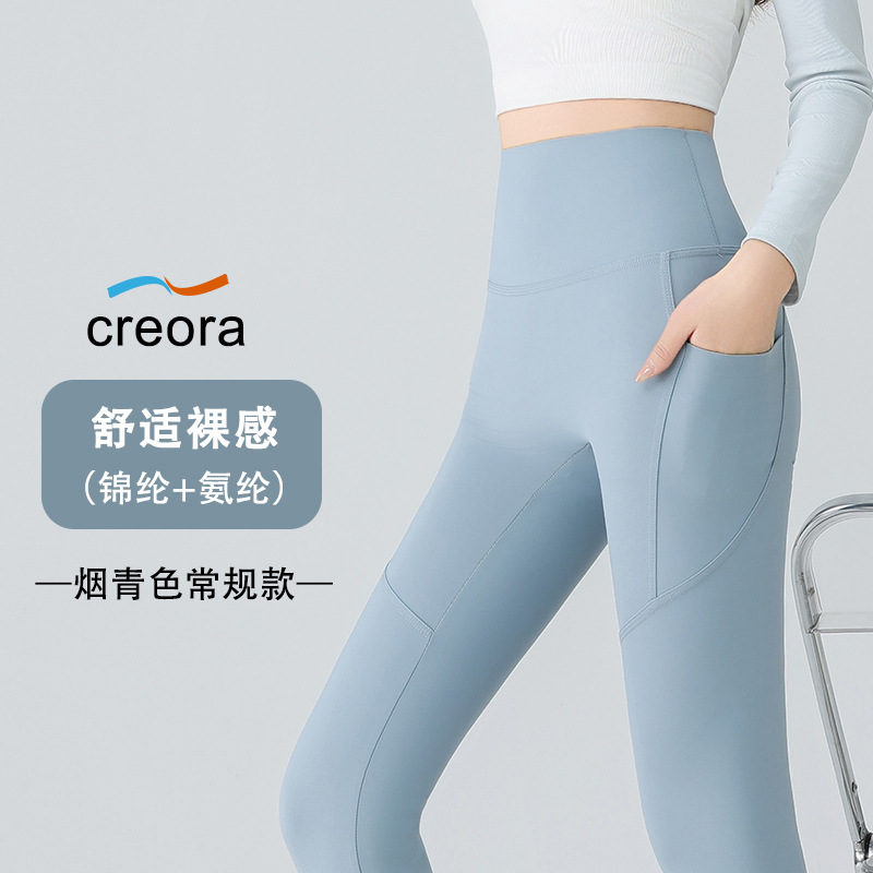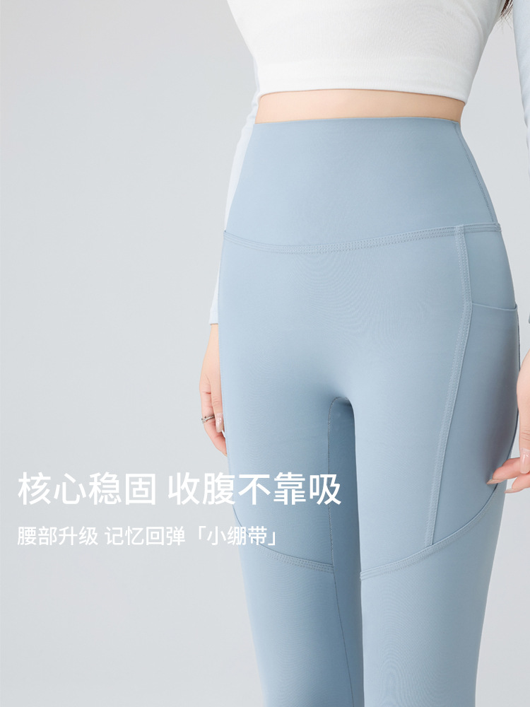더블 포켓 요가 바지 여성의 봄과 여름 외부 착용 꽉 높은 허리 엉덩이 리프팅 스포츠 달리기 전문 훈련 피트니스 바지