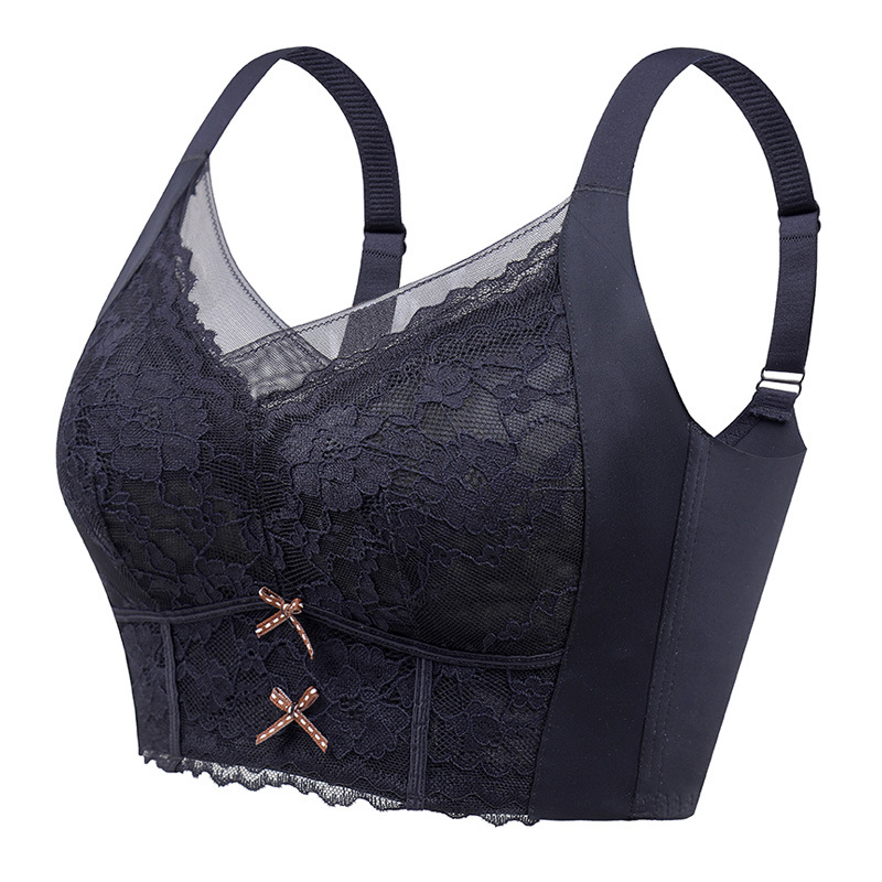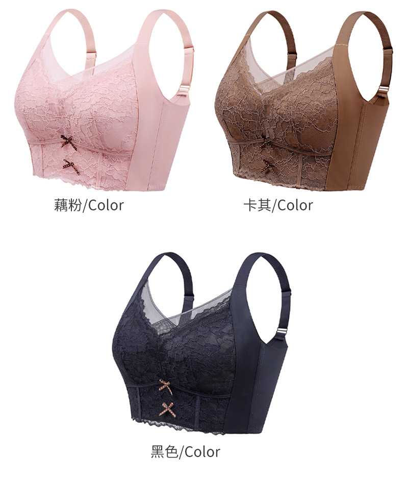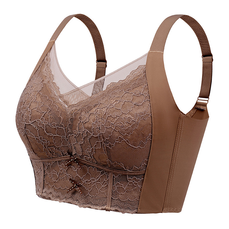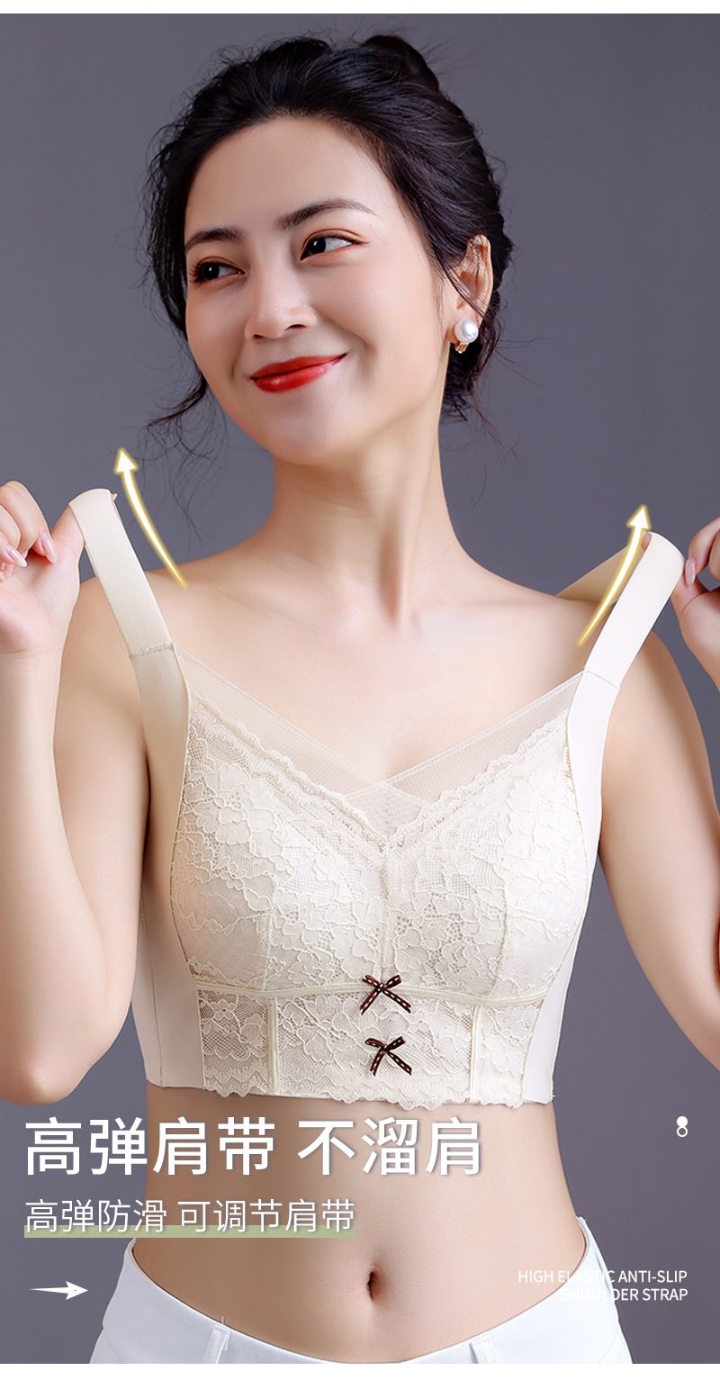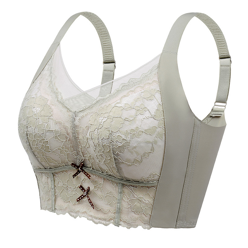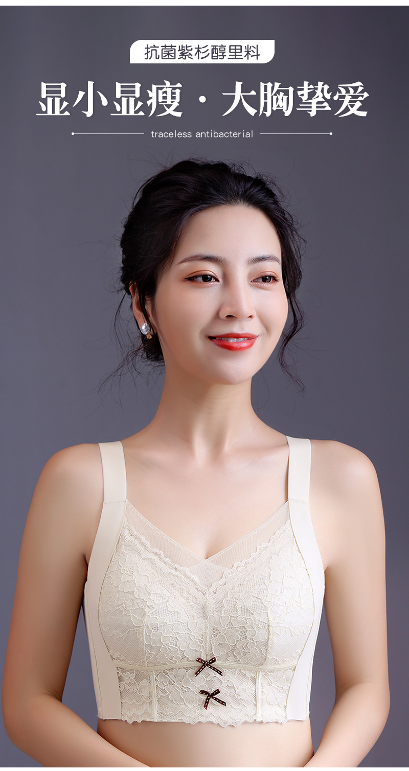 큰 가슴을 작아 보이게 하는 조절형 레이스 브라, 옆가슴 보정, 처짐 방지, 와이어 없는 풀컵 브라
