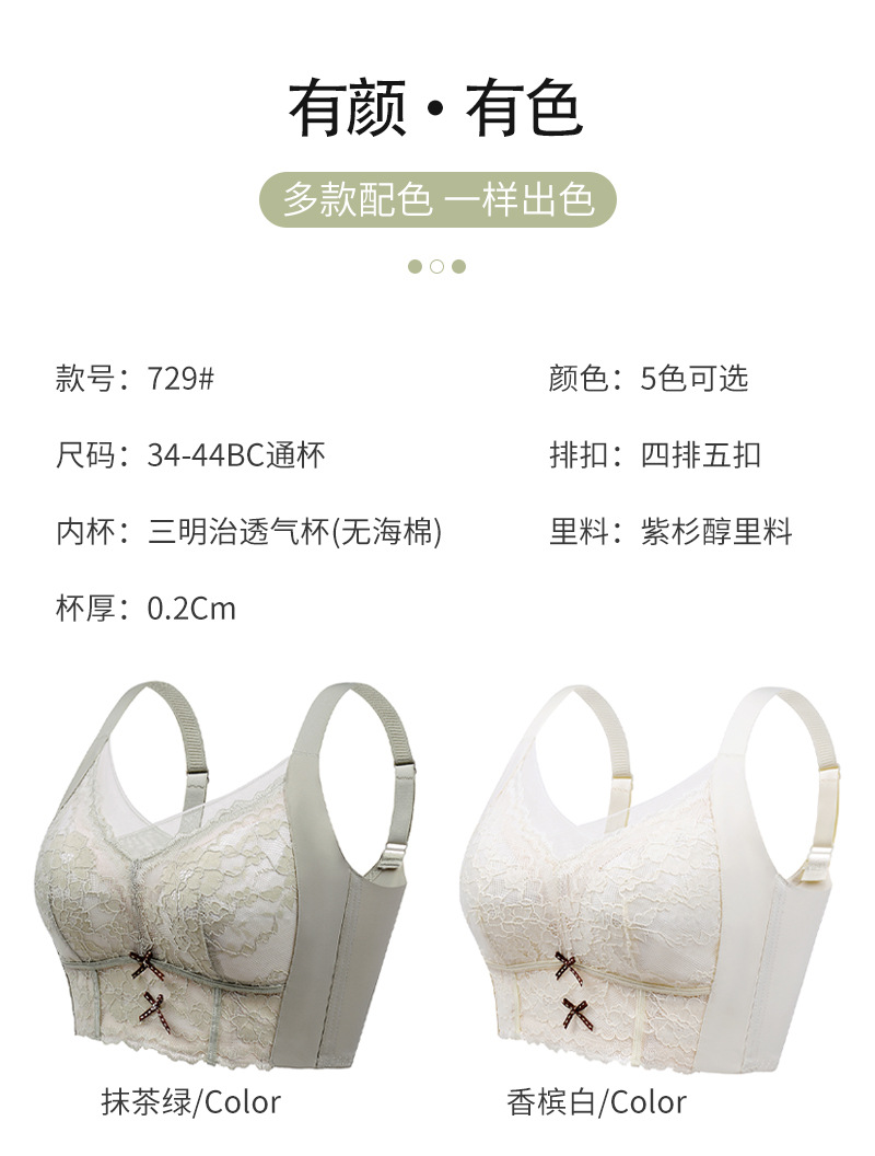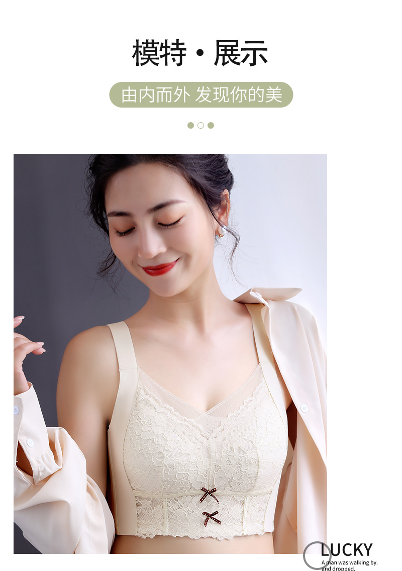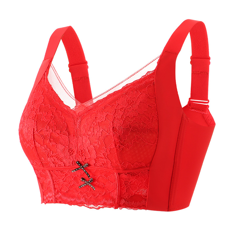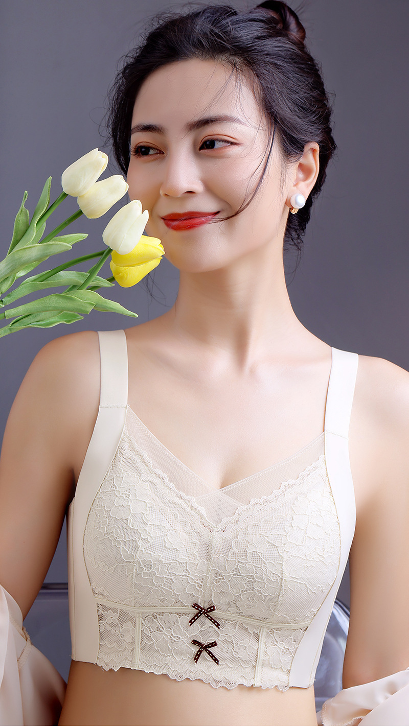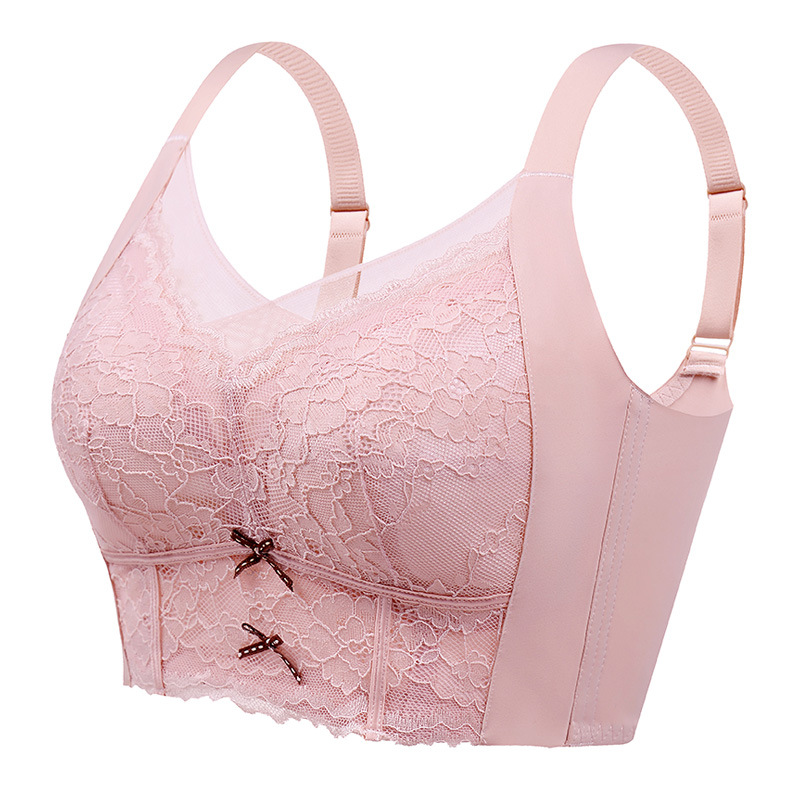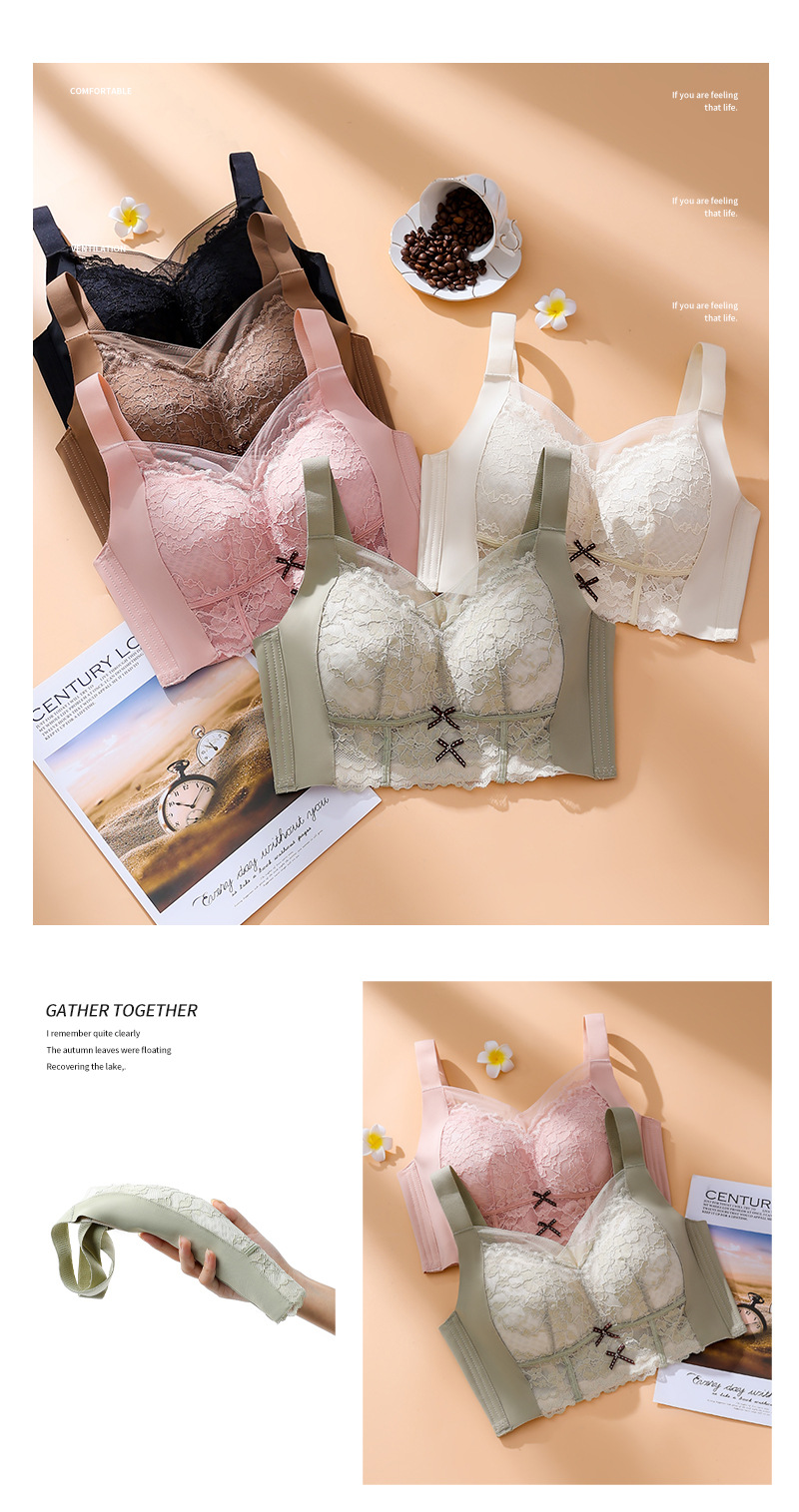 큰 가슴을 작아 보이게 하는 조절형 레이스 브라, 옆가슴 보정, 처짐 방지, 와이어 없는 풀컵 브라