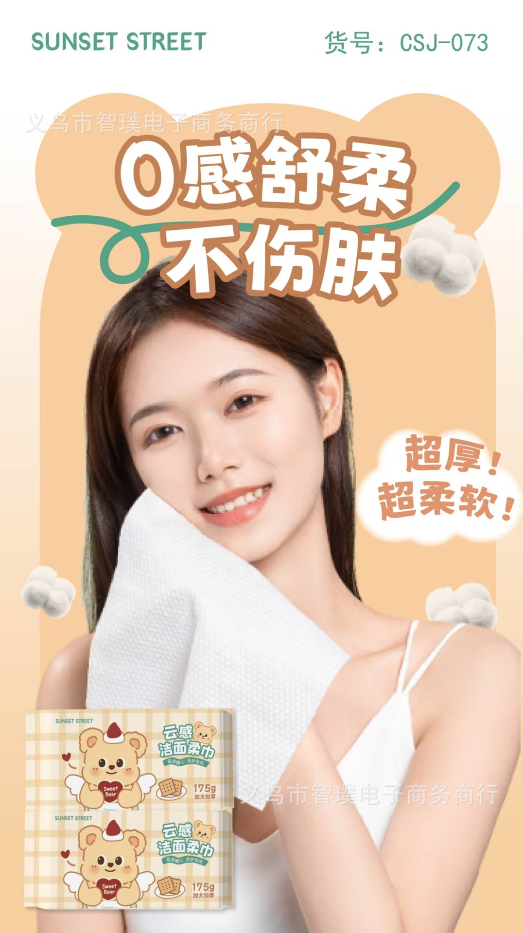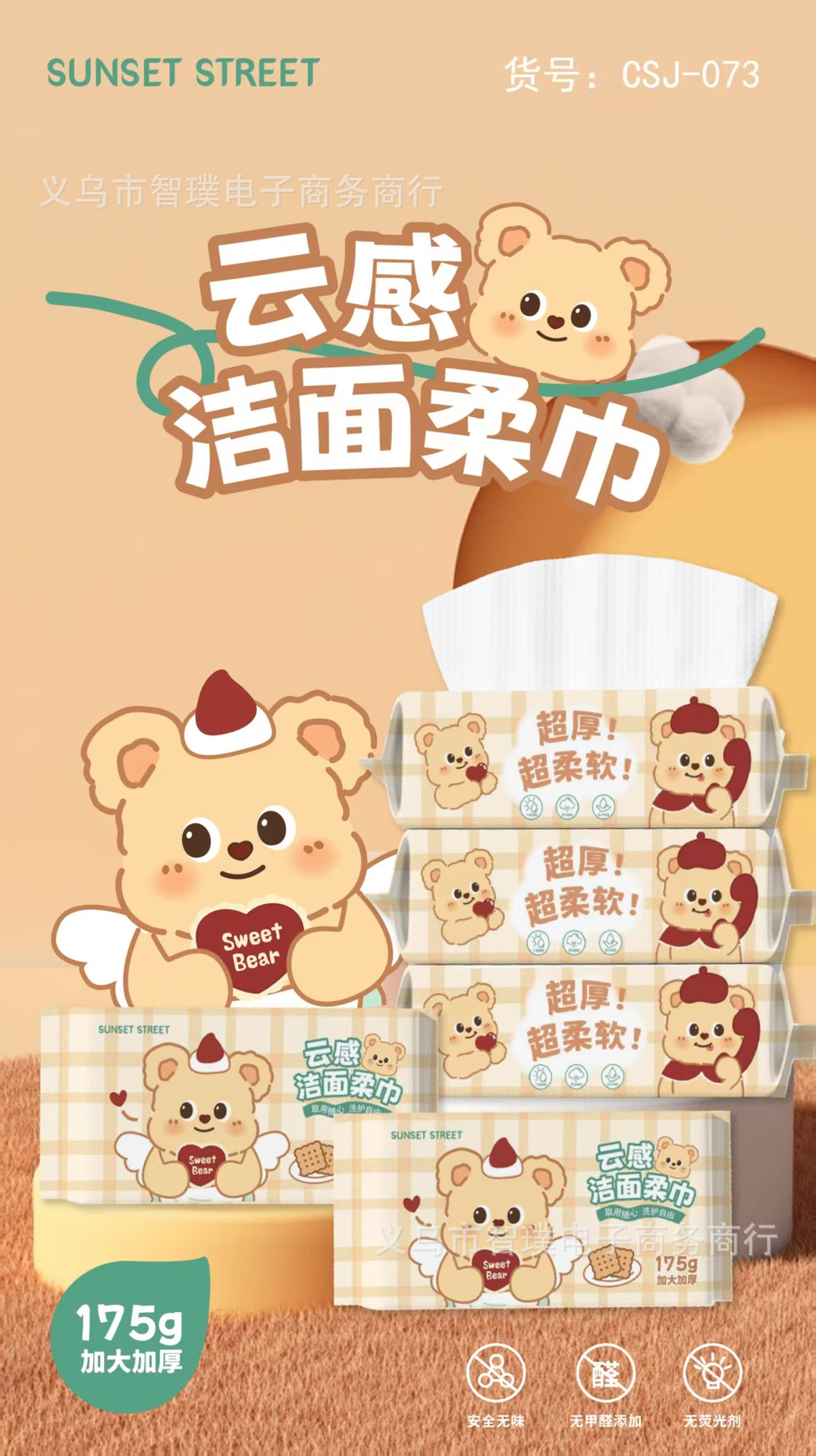 디저트 베어 코튼 소프트 타월 일회용 인출 가능한 페이스 워시 타월 두꺼운 건조 및 젖은 이중 사용 소프트 스킨 클렌징 타월 도매