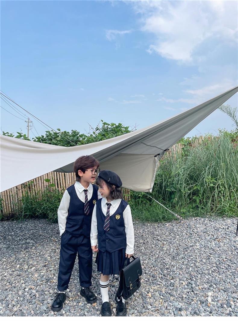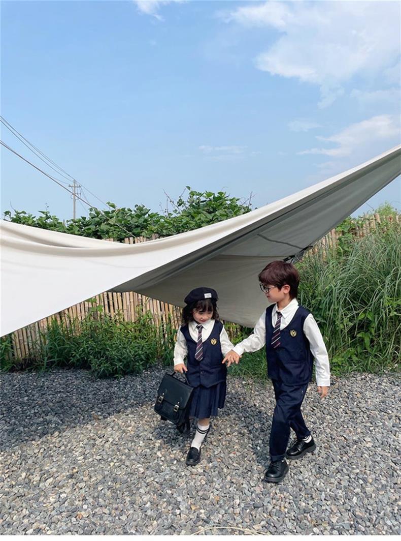 아동복 아카데미 스타일 2025 페이크 투피스 세트 한국식 어린이 원피스 반팔 셔츠 바지 반바지 트렌디스토어 가기