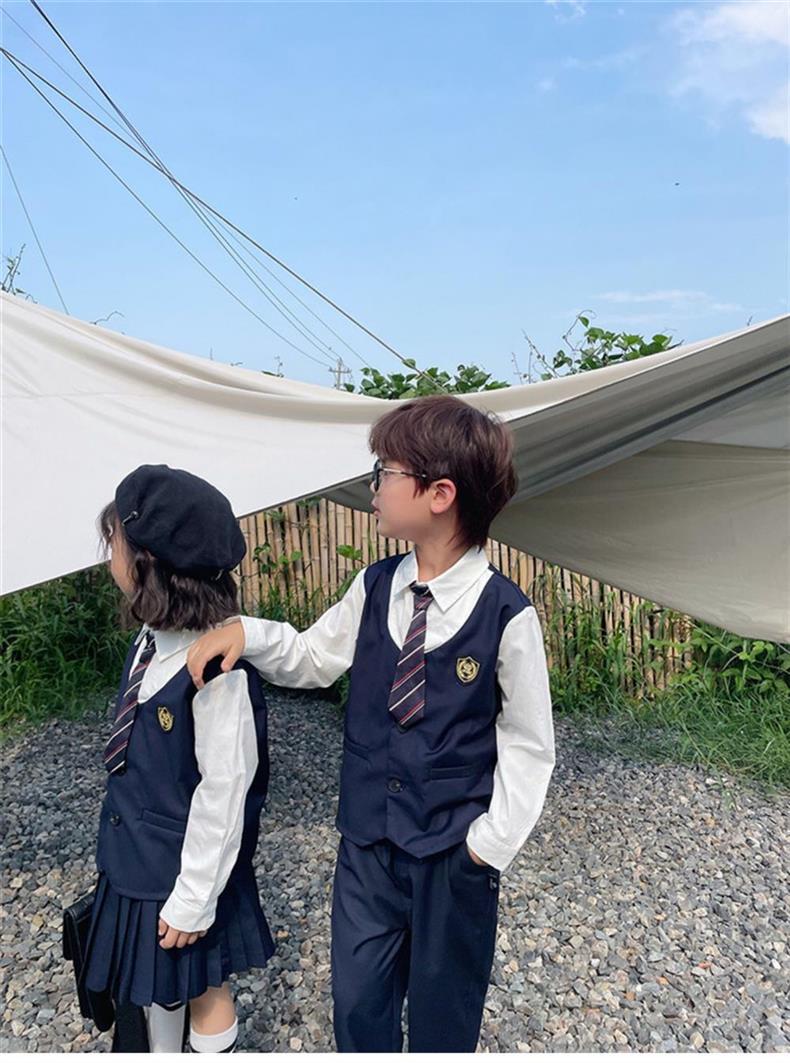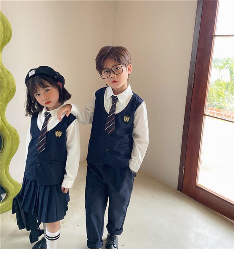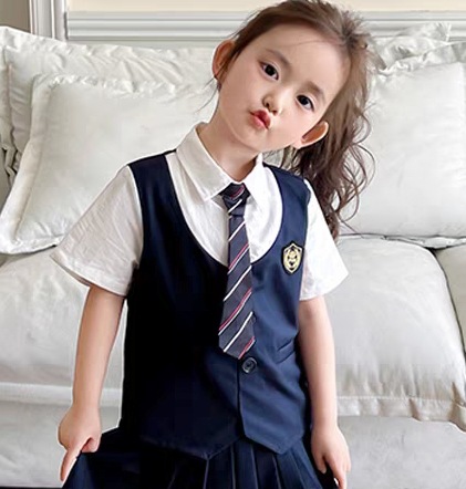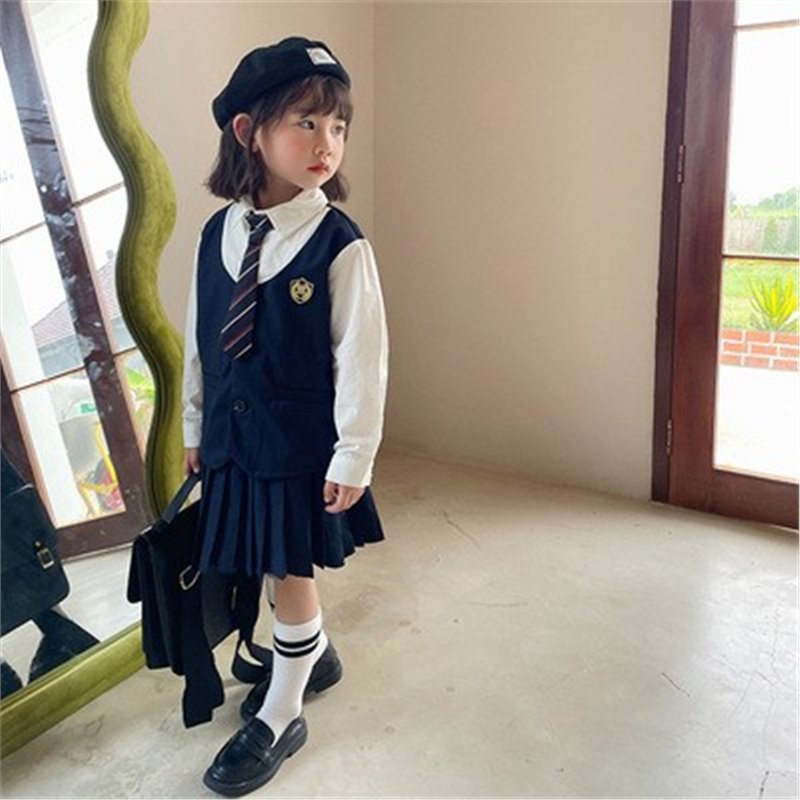 • 배지 여아 페이크 투피스 긴팔 슈트(넥타이 포함)