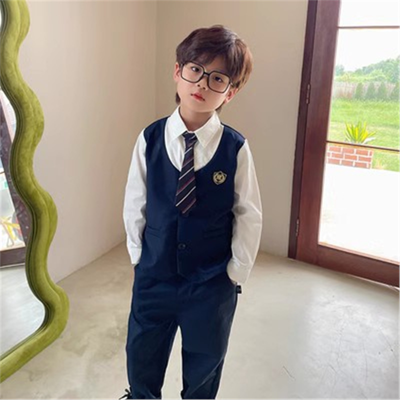 • 뱃지 남아 페이크 투피스 긴팔 슈트(넥타이 포함)