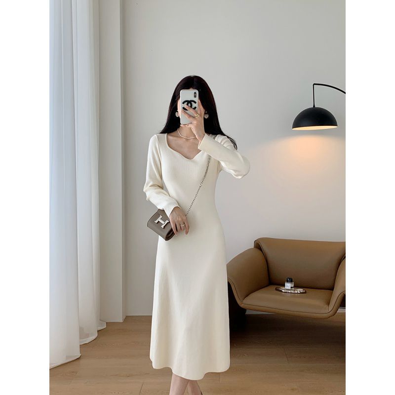 섹시한 힙합 랩 계모 스커트 여성의 가을과 겨울 어울리는 코트 내부 스웨터 원피스 중간 길이의 슬림 하이 허리 니트 원피스스토어 가기