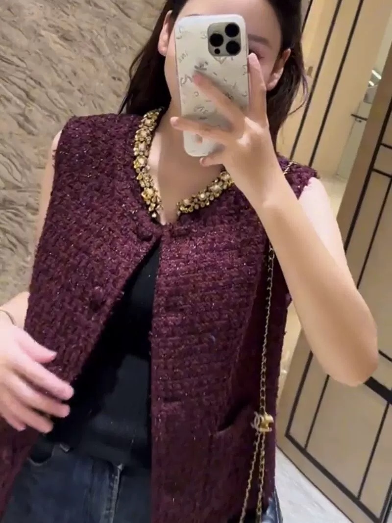 조끼 여성 샤넬 스타일 톱 2025 가을 새로운 민소매 조끼 조끼 재킷 인터넷 인기 짧은 스타일스토어 가기